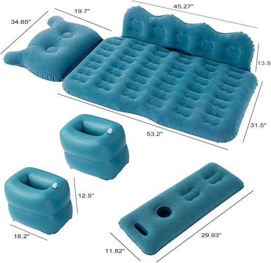 Oshotto Designer Thickend Car Travel Camping Portable Bed Air Mattress with Pillow, Car Air Pump for Cars (Blue)