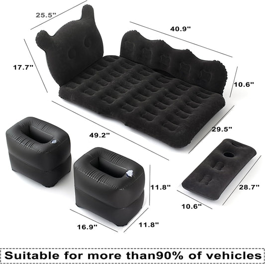 Oshotto Designer Thickend Car Travel Camping Portable Bed Air Mattress with Pillow, Car Air Pump for Cars (Black)