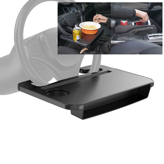 Oshotto FT-06 Dual Purpose Car Steering Wheel Rack Desk Vehicle seat Gap Organizer Dinning car Tray Table Cup Holder Compatible with All (Black)