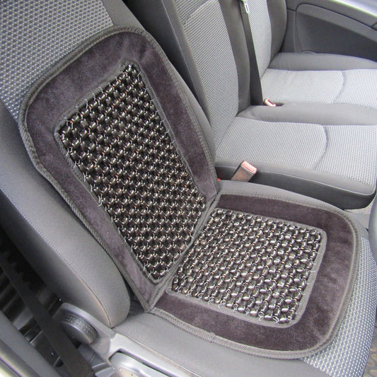 Oshotto Car Wooden Bead Seat Cushion with Velvet Border for All Cars - (Grey) - 1 Piece