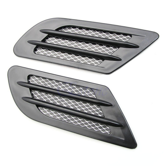 Oshotto 2Pcs ZW-5113 Car Decorative Electroplate Air Flow Intake Scoop Turbo Bonnet Vent Hood Universal For All Cars (Black)