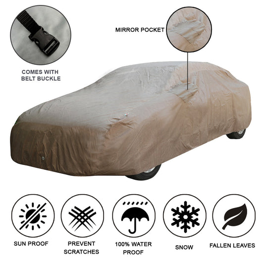 Oshotto Brown 100% Waterproof Car Body Cover with Mirror Pockets For Toyota Corolla