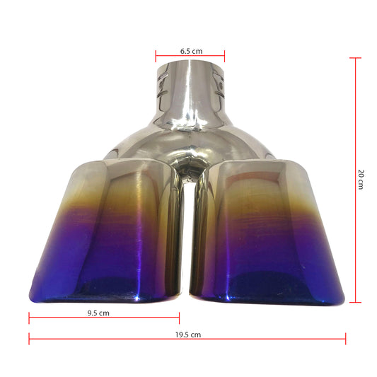 Oshotto Stainless Steel SS-010-BLUE Car Exhaust Dual Pipe Muffler Silencer Cover for All Cars - Multicolor