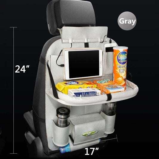 Oshotto Car Backseat Storage Organizer with Foldable Tray, Multi-Pocket for Bottles, Tissue Boxes Compatible with All Cars (Dark Grey)