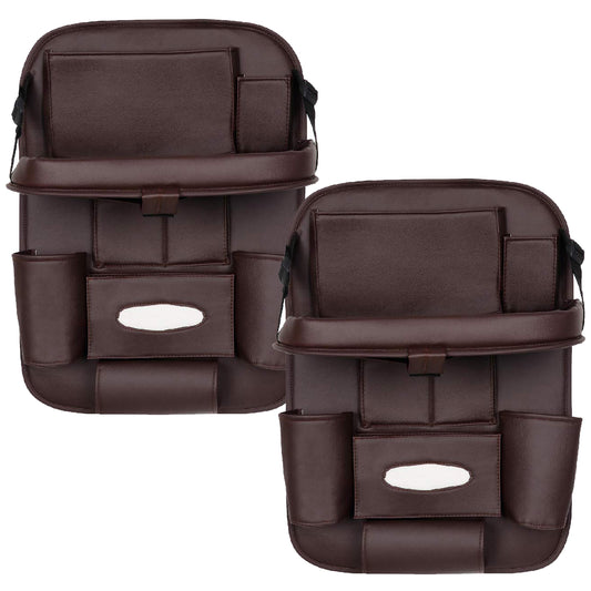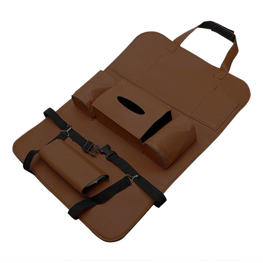 Oshotto Car Backseat Storage Organizer with Foldable Tray, Multi-Pocket for Bottles, Tissue Boxes Compatible with All Cars (Brown)