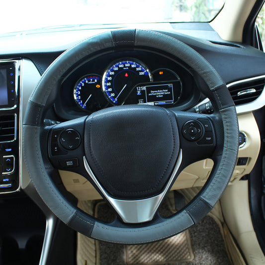 Oshotto SC-17 Fiber Leather Car Steering Cover For All Cars (Black, Grey)