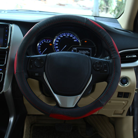 Oshotto SC-16 Fiber Leather Car Steering Cover For All Cars (Black, Red)