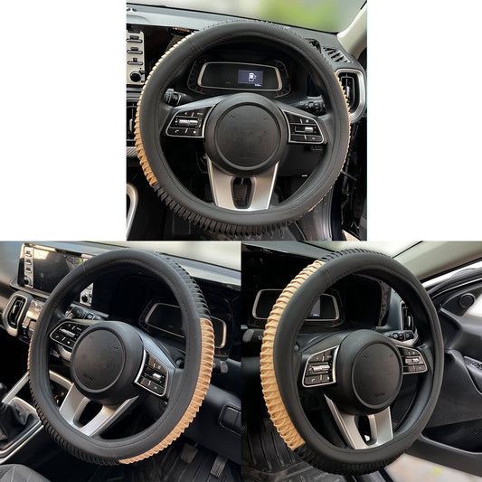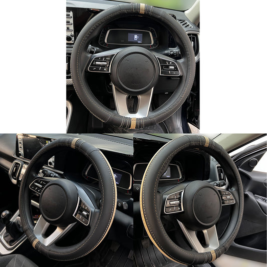 Oshotto SC-12 Fiber Leather Car Steering Cover For All Cars (Black, Beige)