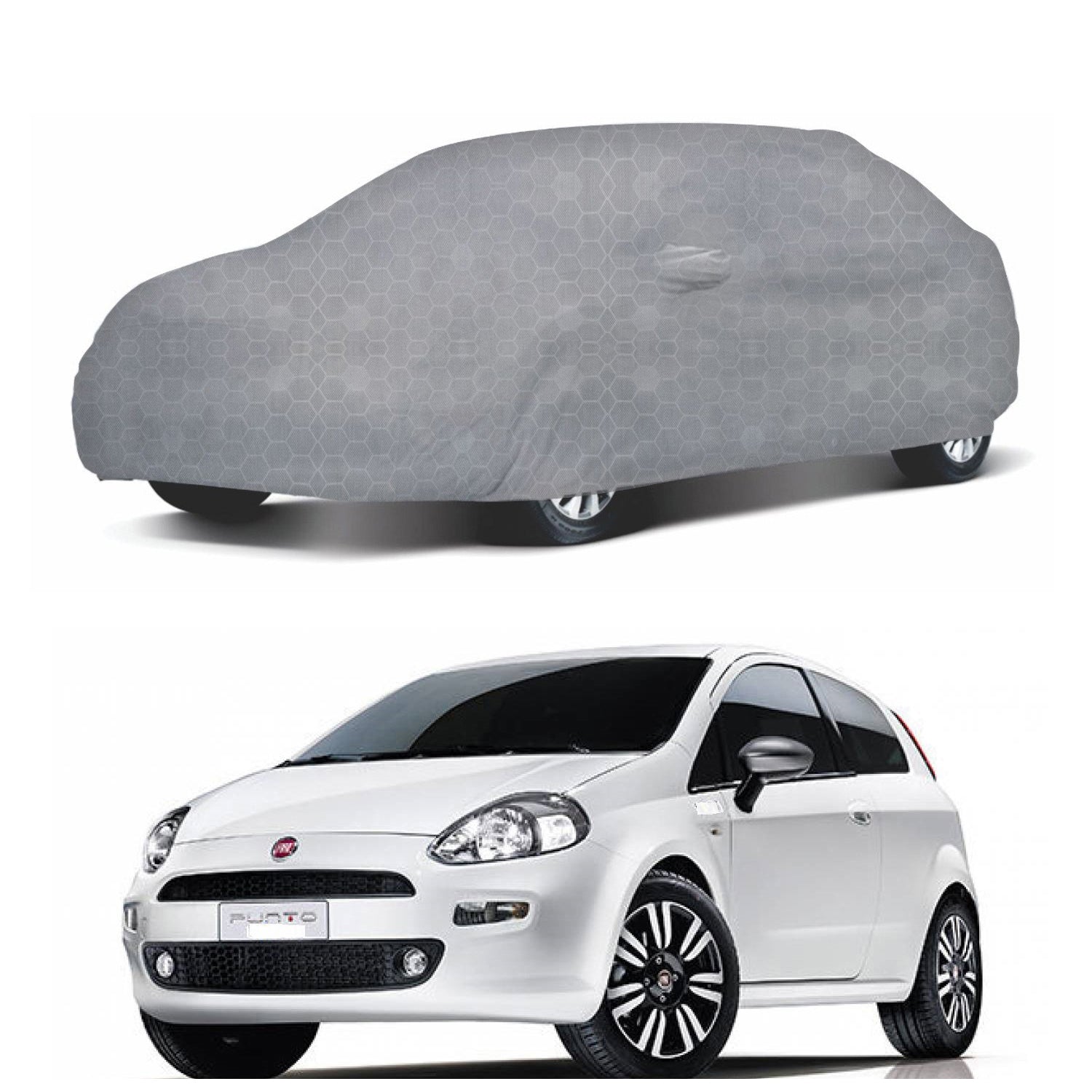 Oshotto 100% Dust Proof, Water Resistant Grey Car Body Cover with Mirror Pocket For Fiat Punto