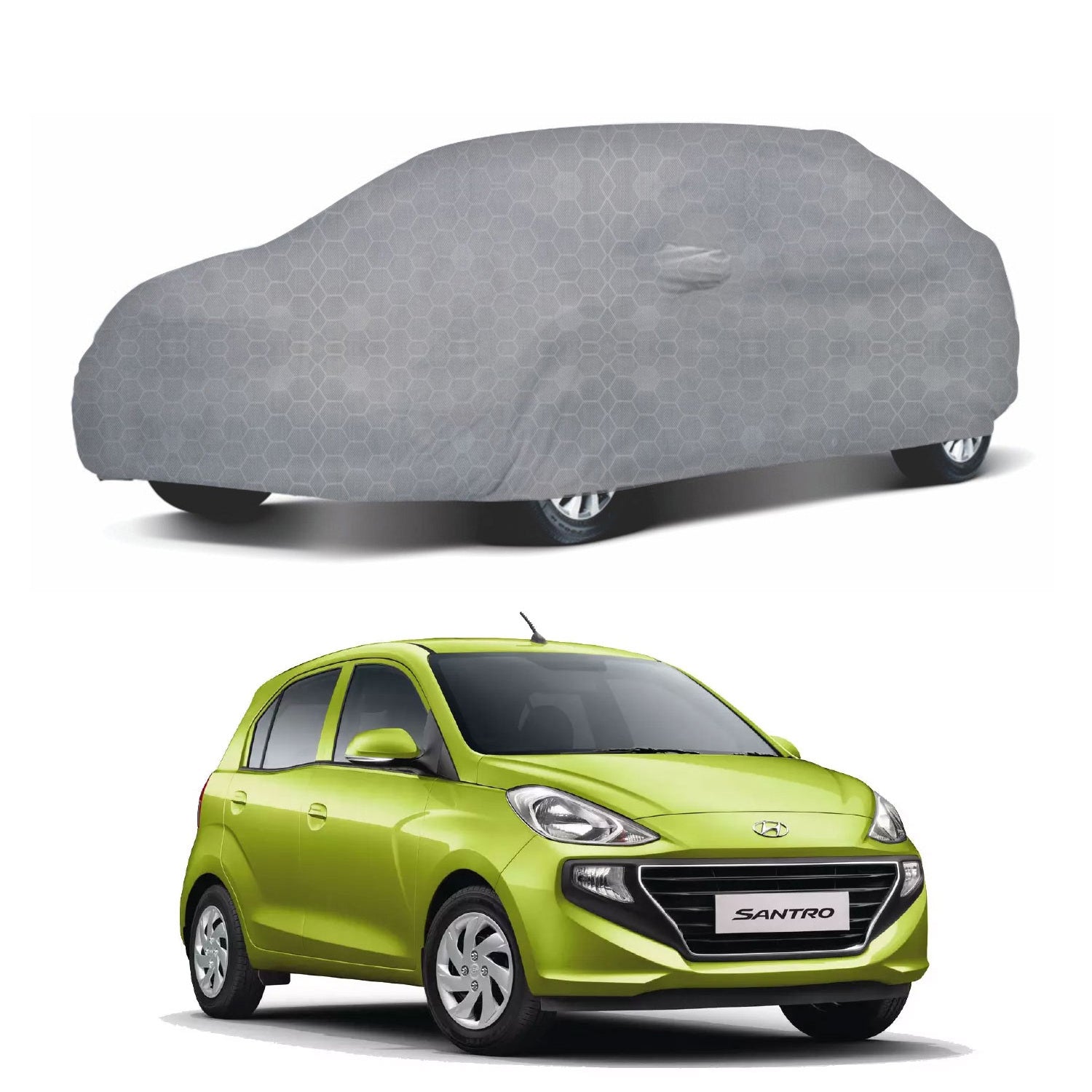 Oshotto 100% Dust Proof, Water Resistant Grey Car Body Cover with Mirror Pocket For Hyundai Santro 2018-2023