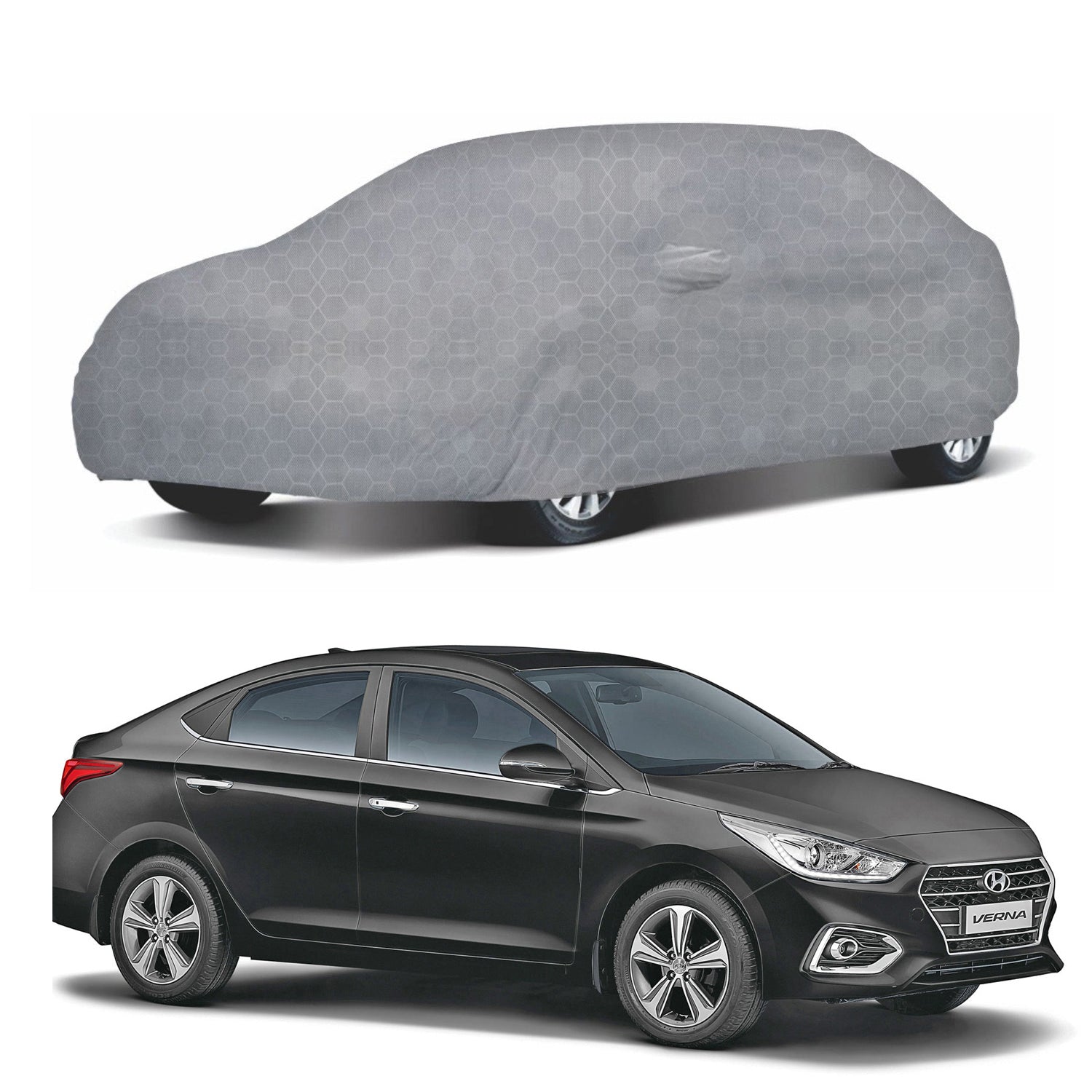 Oshotto 100% Dust Proof, Water Resistant Grey Car Body Cover with Mirror Pocket For Hyundai Verna Old