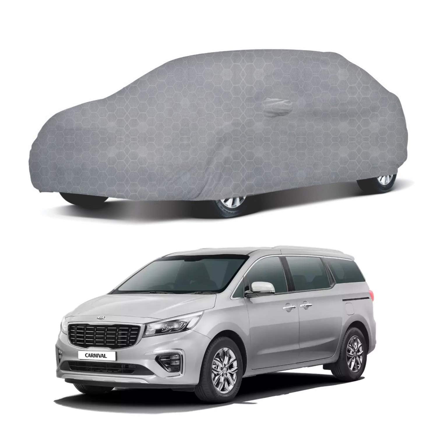 Oshotto 100% Dust Proof, Water Resistant Grey Car Body Cover with Mirror Pocket For KIA Carnival