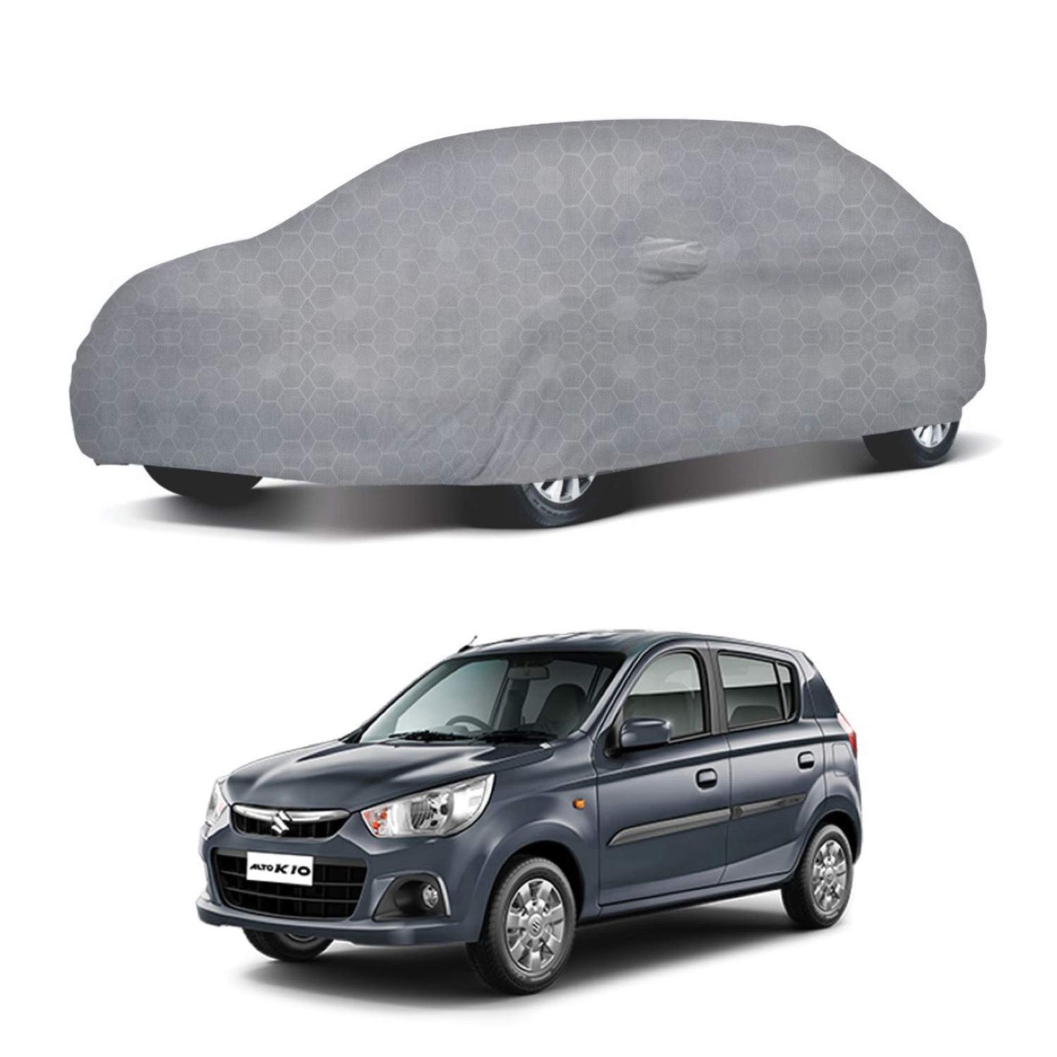 Oshotto 100% Dust Proof, Water Resistant Grey Car Body Cover with Mirror Pocket For Maruti Suzuki Alto K10