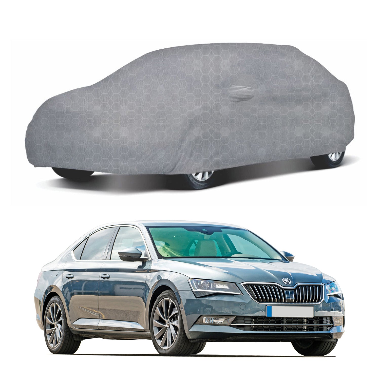 Oshotto 100% Dust Proof, Water Resistant Grey Car Body Cover with Mirror Pocket For Skoda Superb