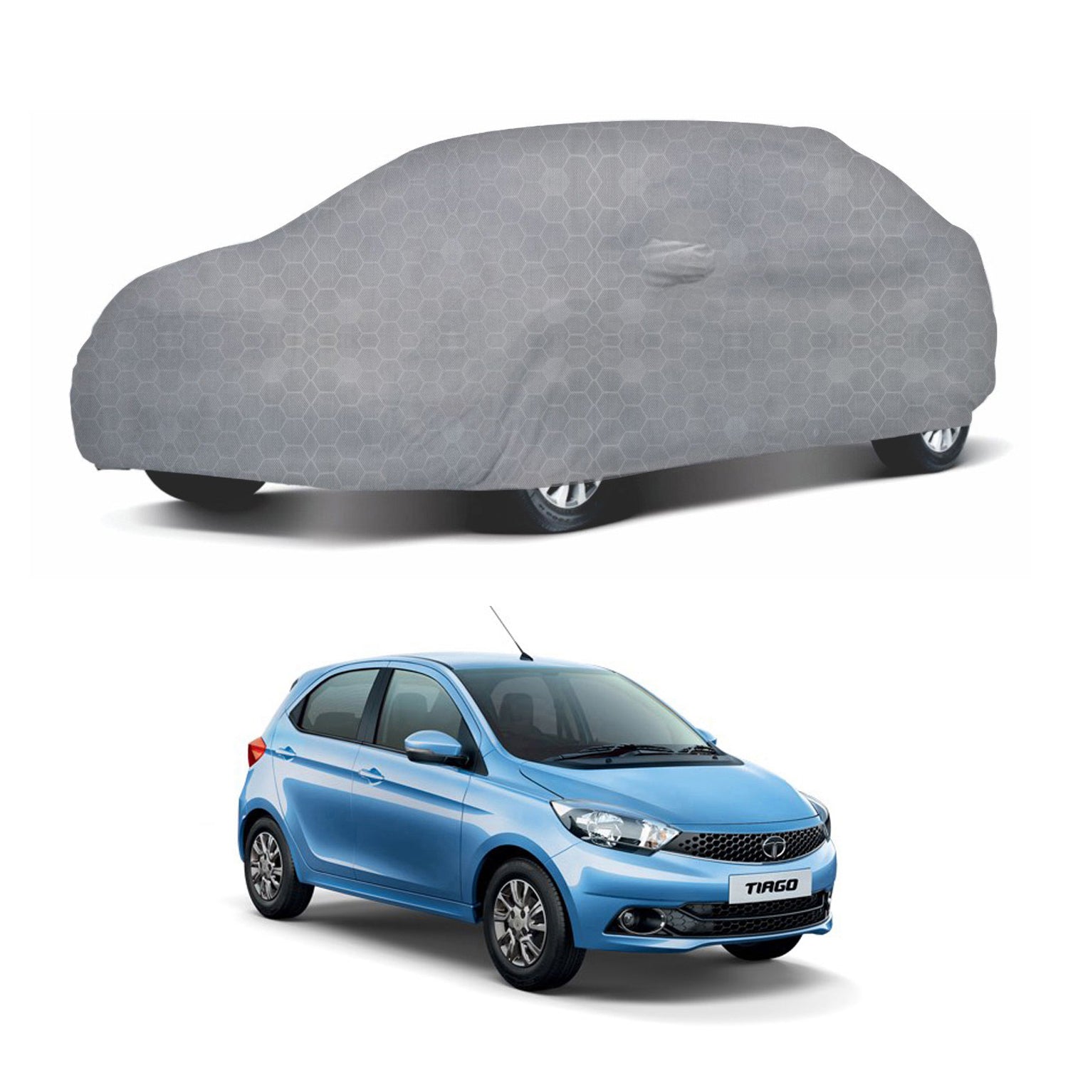 Oshotto 100% Dust Proof, Water Resistant Grey Car Body Cover with Mirror Pocket For Tata Tiago