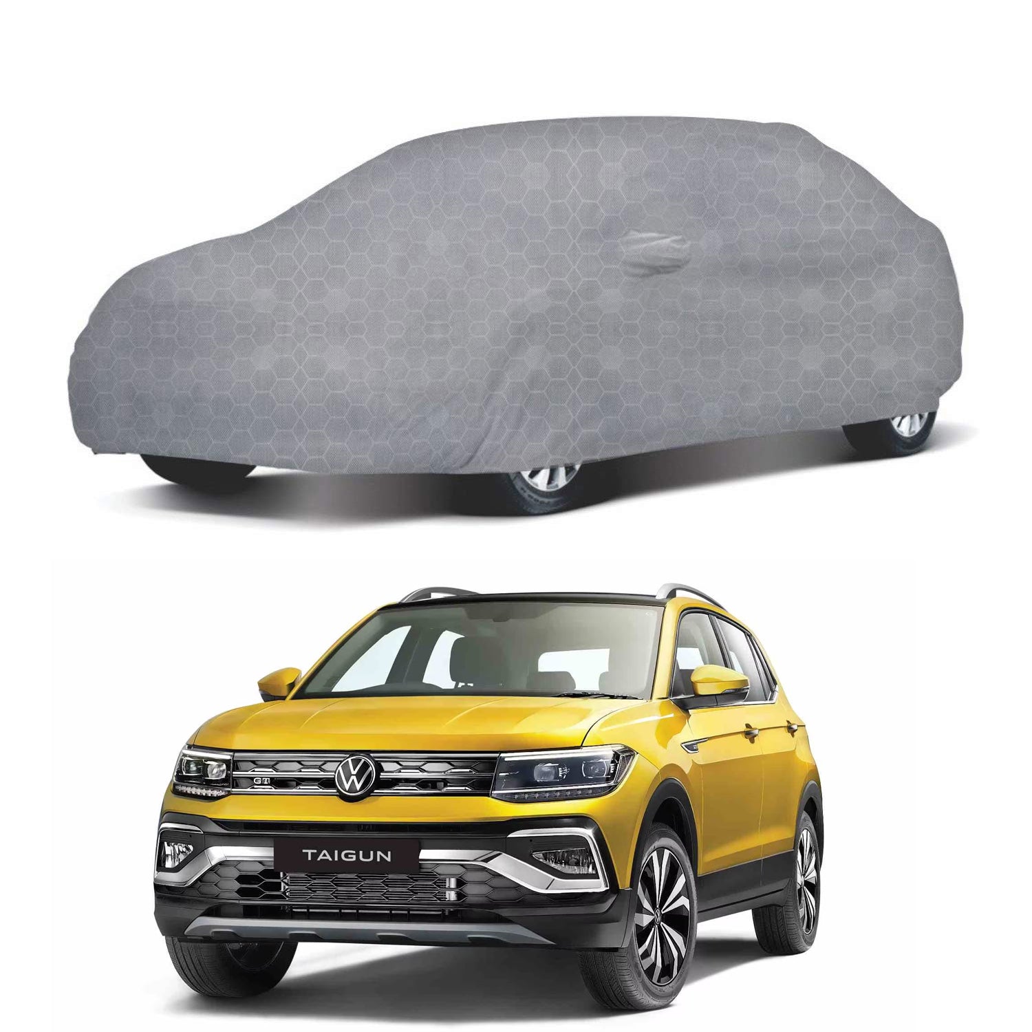 Oshotto 100% Dust Proof, Water Resistant Grey Car Body Cover with Mirror Pockets For Volkswagen Taigun