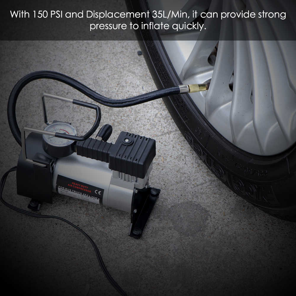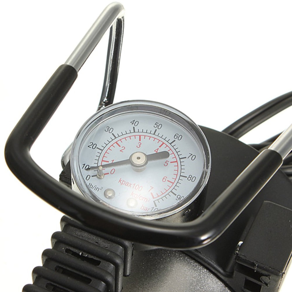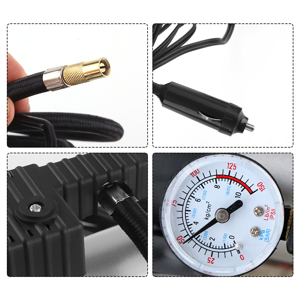 Double fast inflate due to high air flow output of 25L/min, double power twin cylinder compressor with max. pressure. 100 PSI measurement meter, low noise 100% Copper Winding, Applicable for cars, SUV, auto, bikes, small trucks & buses. Extra Nozzle attachment helps in inflating ball, bike, air mattress, Oil less design with no daily maintenance.