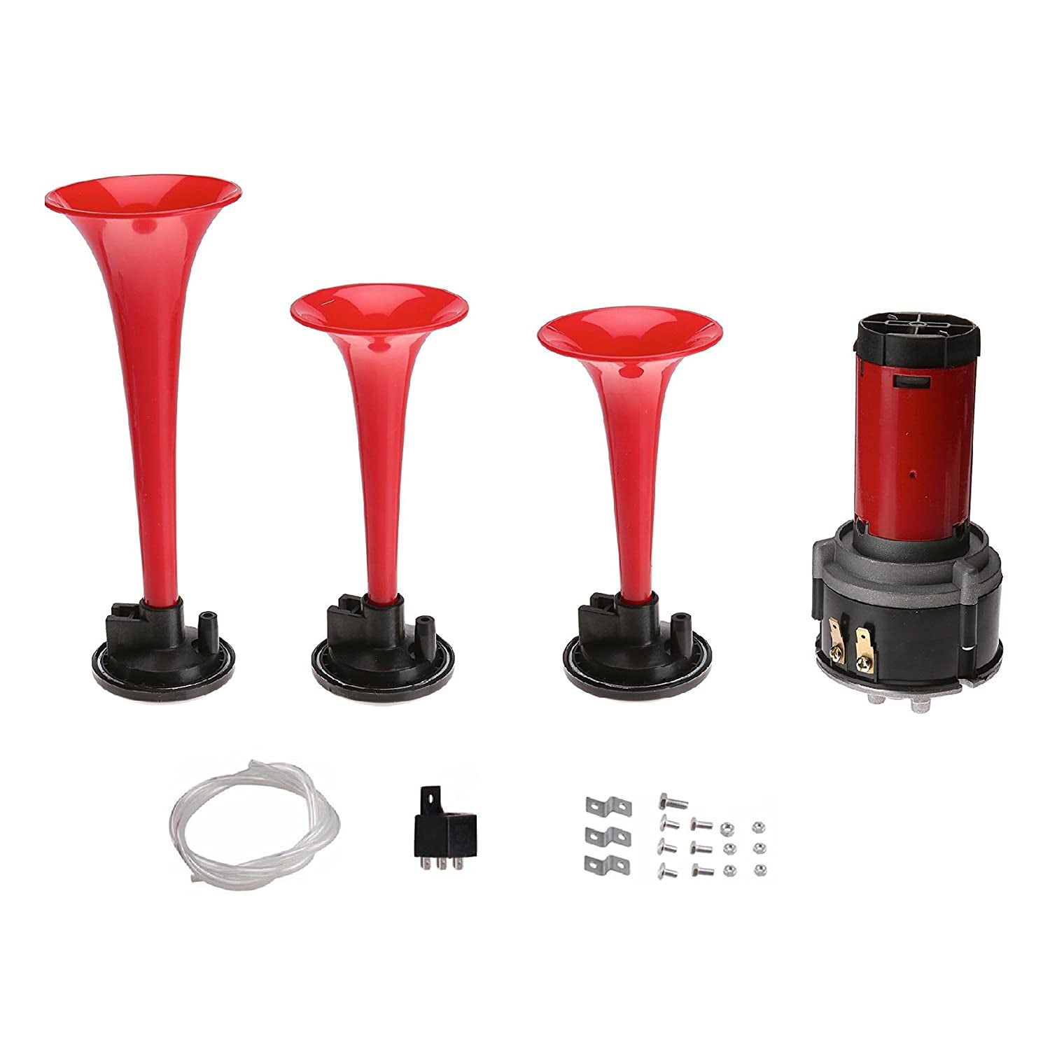Oshotto 3 Pipe Air Pressure Horn for Cars, Trucks, Boats, ATVS & Heavy Vehicles (Red)