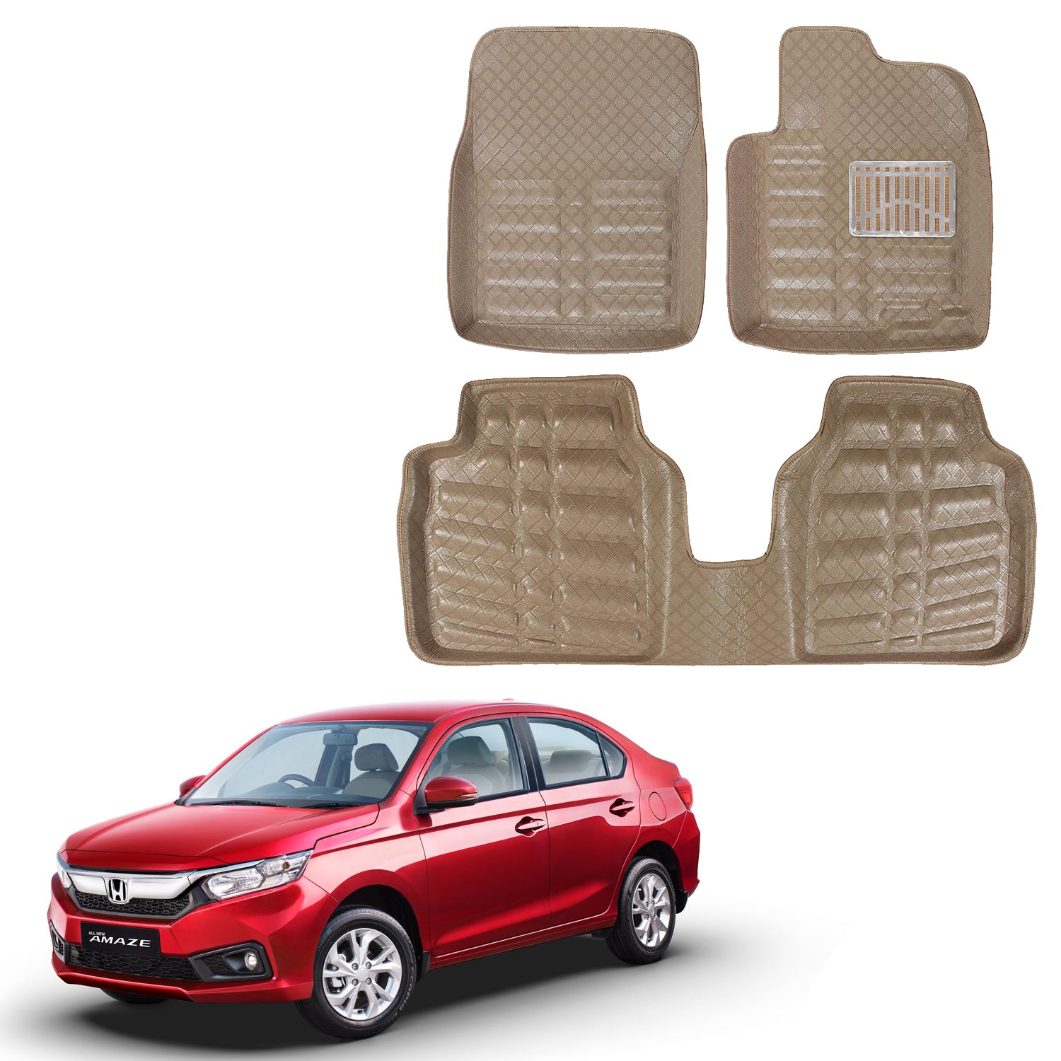 Oshotto 4D Artificial Leather Car Floor Mats For Honda Amaze (2018-2023 Model) - Set of 3 (2 pcs Front & one Long Single Rear pc) - Beige