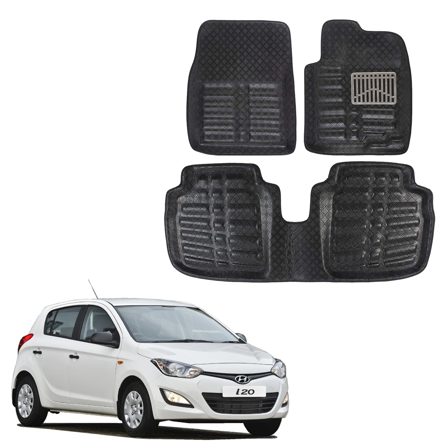 Oshotto 4D Artificial Leather Car Floor Mats For Hyundai i20 (2008-2012) - Set of 3 (2 pcs Front & one Long Single Rear pc) - Black