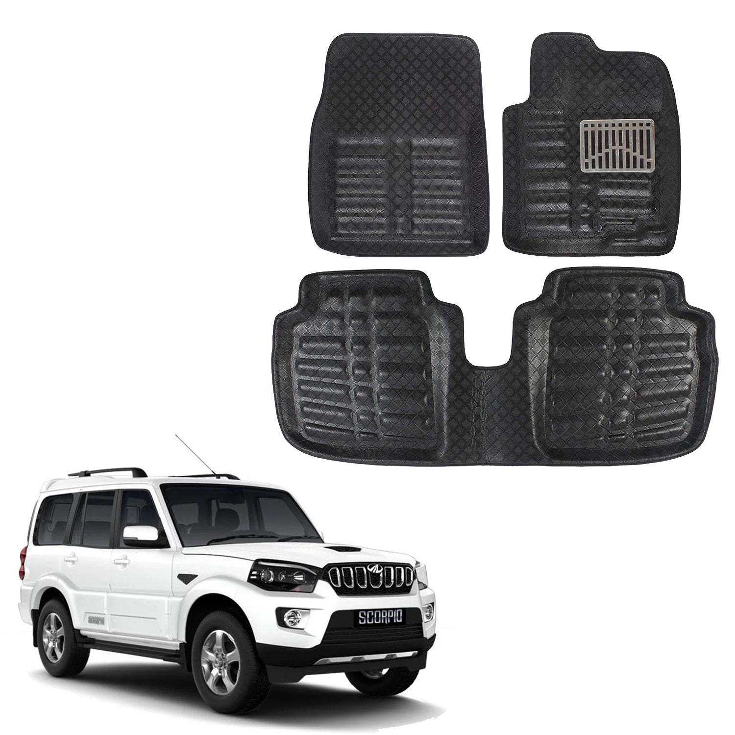 Oshotto 4D Artificial Leather Car Floor Mats For Mahindra Scorpio - Set of 4 (Complete Mat with Third Row) - Black