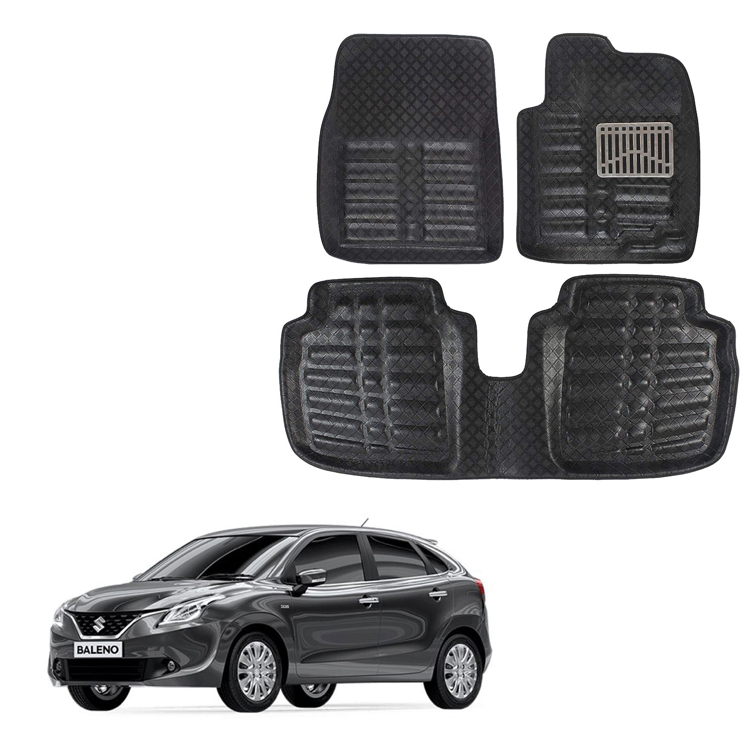 Oshotto 4D Artificial Leather Car Floor Mats For Maruti Suzuki Baleno 2015-2022 - Set of 3 (2 pcs Front & one Long Single Rear pc) - Black