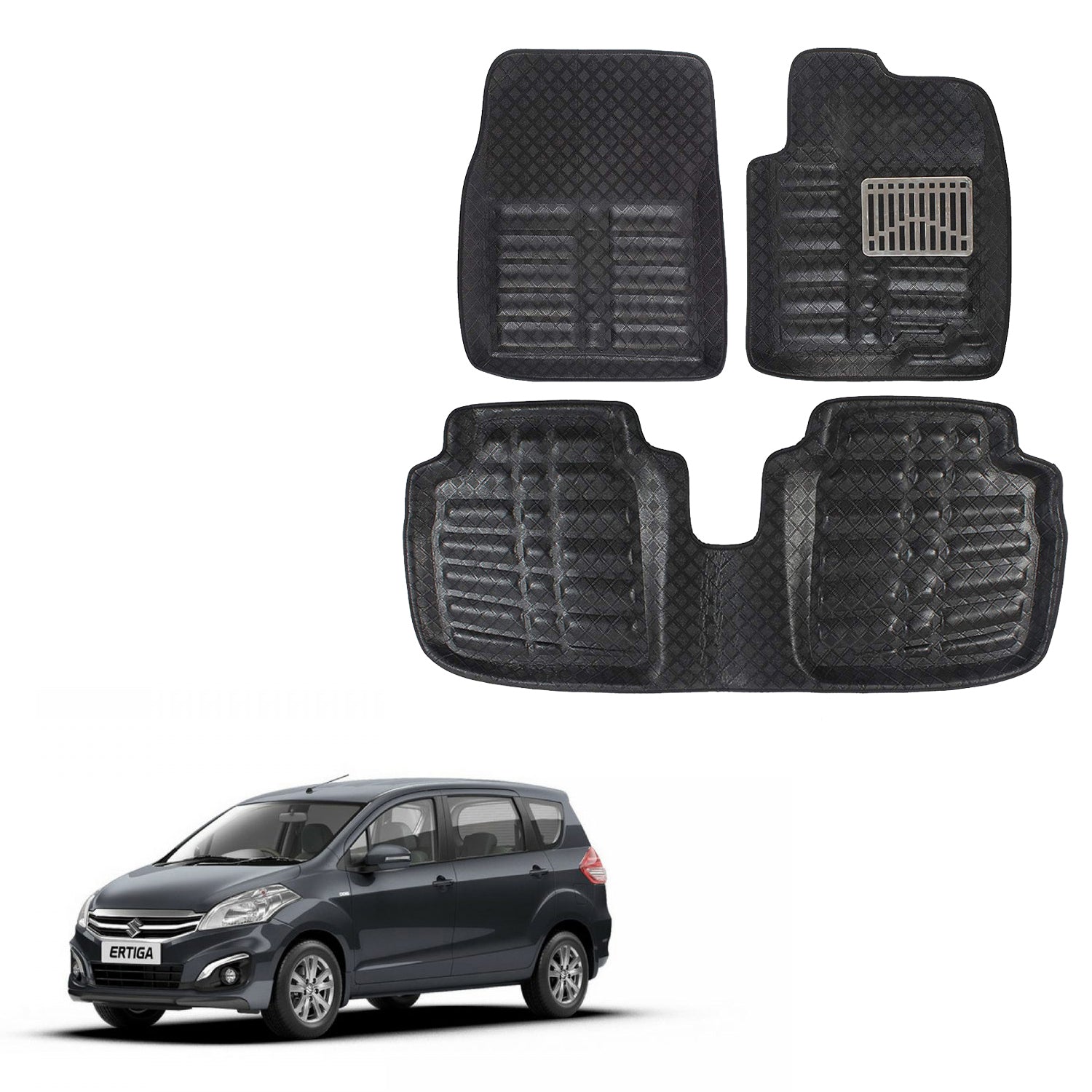 Oshotto 4D Artificial Leather Car Floor Mats For Maruti Suzuki Ertiga 2012-2018 Complete Mat with 3rd Row and Dicky -Set of 5 - Black