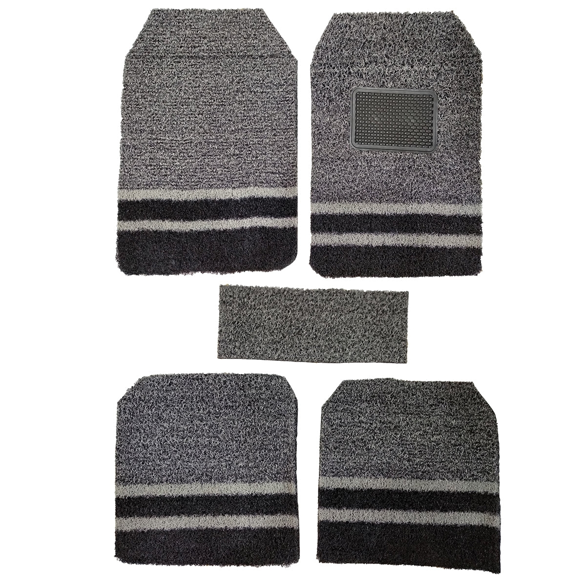 Oshotto Anti Skid Curly Noodle Grass 18mm Car Foot/Floor Mats for All Cars (Set of 5, Black,Grey)