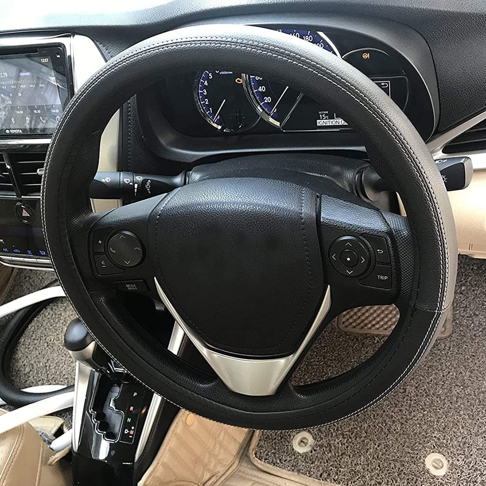 Oshotto Artifical Leather SC-13 Car Steering Cover for All Cars (Black with White Thread)