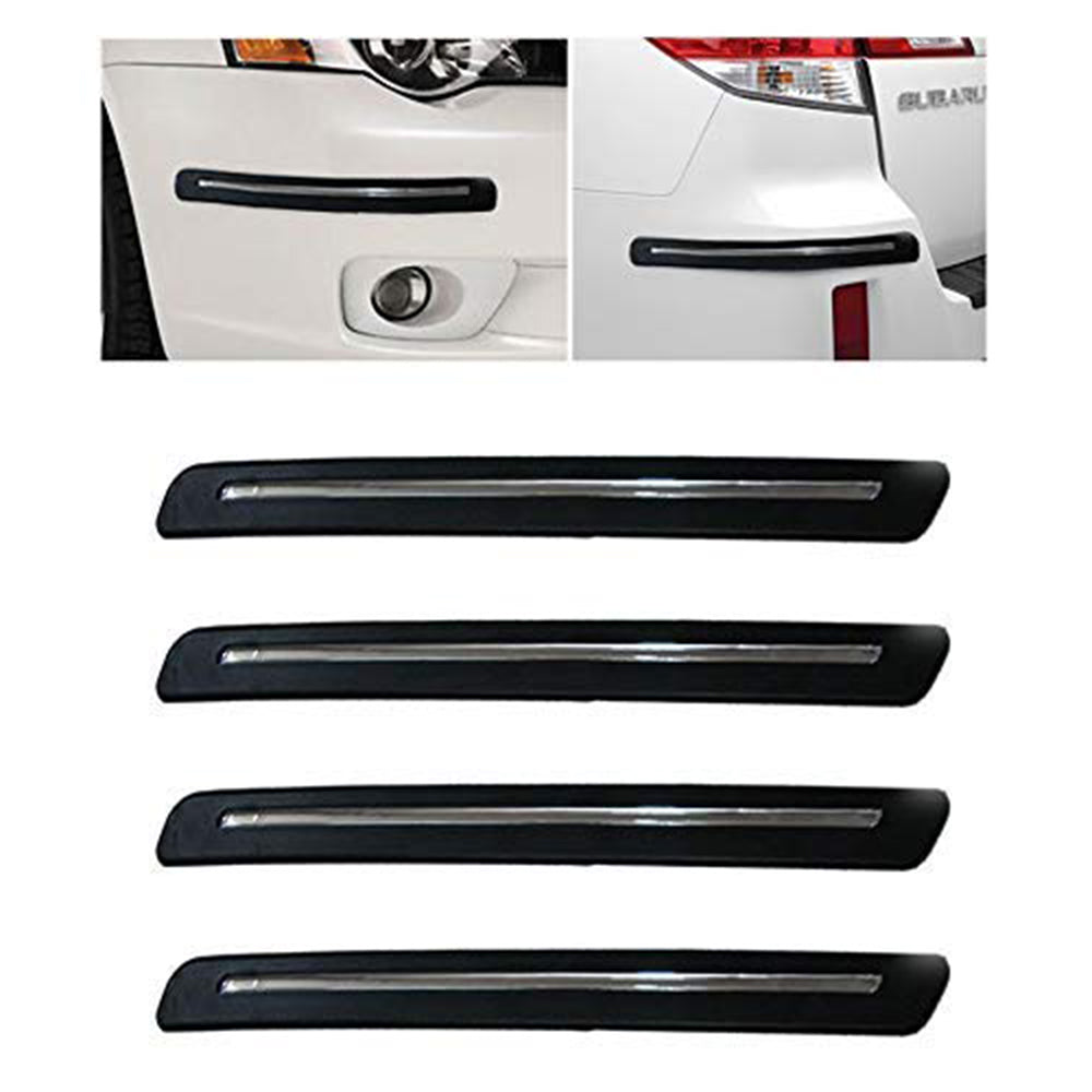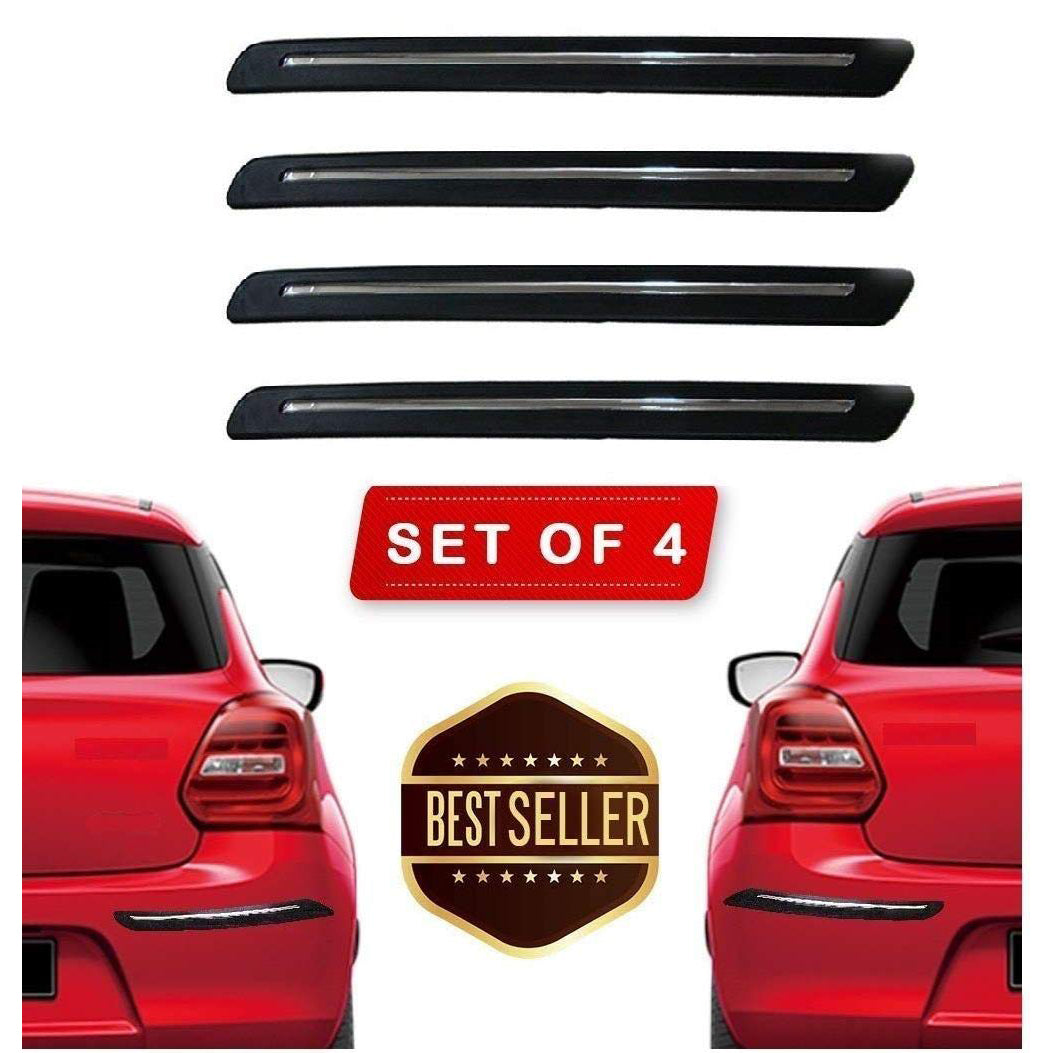 Oshotto (BP-01) Car Black Rubber Bumper Protector with Single Chrome line For All Cars -(Set of 4 pcs)