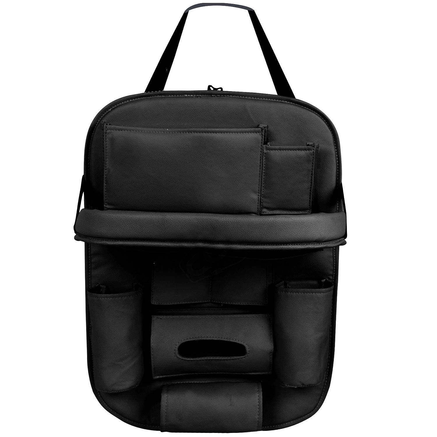 - IMPORTED LUXURY PU LEATHER MATERIAL–: Car Back Seat Pocket Storage with Tray, High-Grade premium quality PU leather stays useful for years and it makes you car elegant! Soft and comfortable!