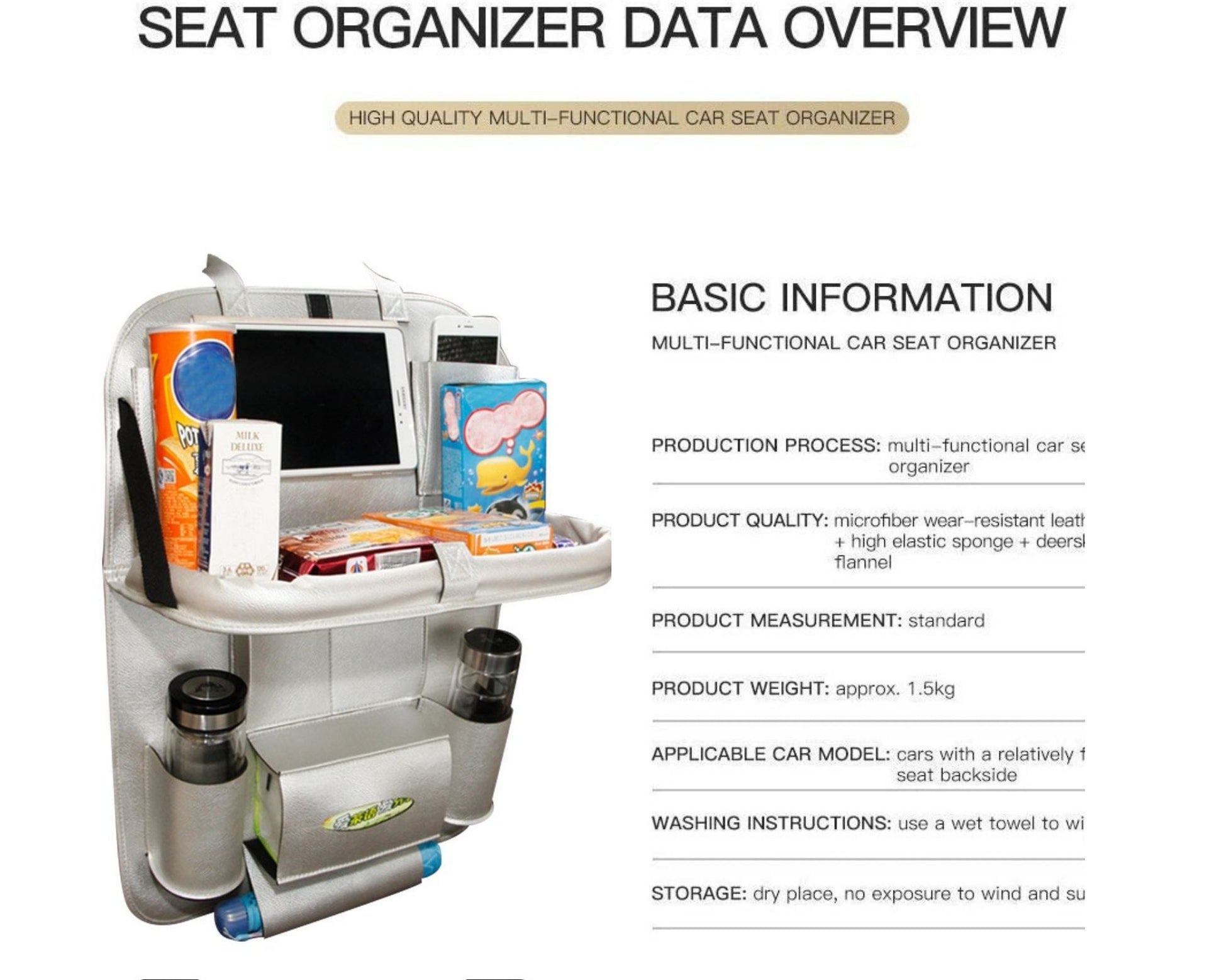 This auto backseat organizer is great to keep your car organized, keep your seat clean, and will protect your seat from getting scratched. It will cover your full seat. We offer the best quality made to a very high standard and easy to clean. This made from High-Grade Premium PU leather material-high-quality and it makes you car elegant! Storage galore-the the roomiest,. Simple and easy to install, takes less than a minute with the long enough adjustable top and bottom buckle straps. Protects more of your seat: This greater coverage means peace of mind protection against damage from scuff marks, snow, sleet, and mud. Perfect car seat saver/protector cover for cars