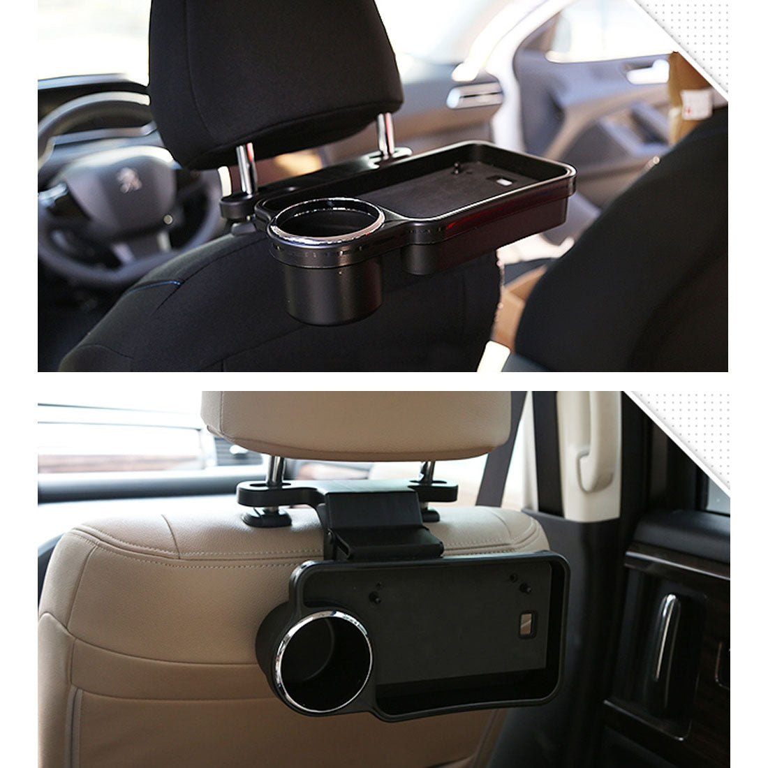 - This car beverage rack is designed with two fixed beads. With these two fixed beads, you can fix your tablet and mobile phone and enjoy watching TV in the back seat of the car.