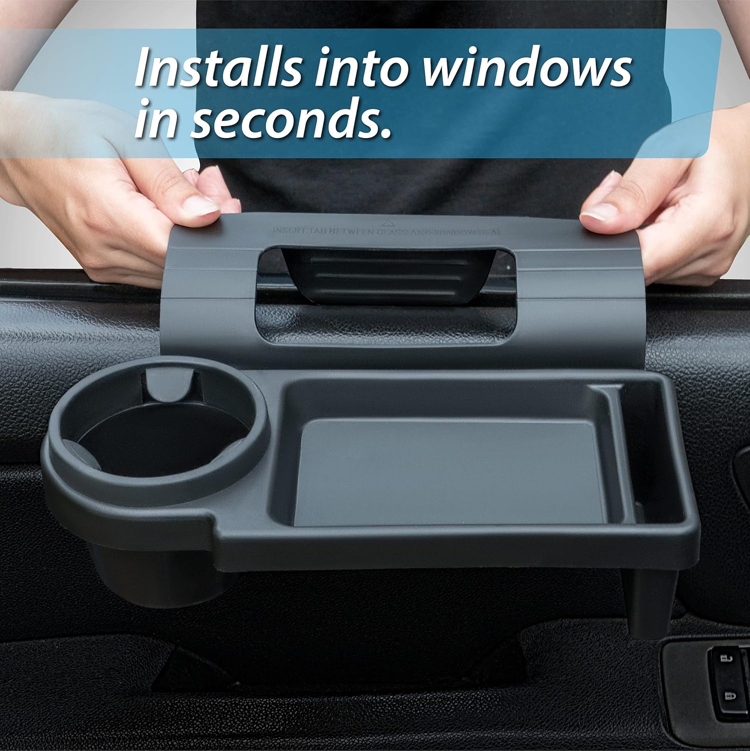 Oshotto (GT-01) Window Mount Car Tray Car Cup/Phone Holder Car Tray Slides Between Window and Door Panel for All Cars