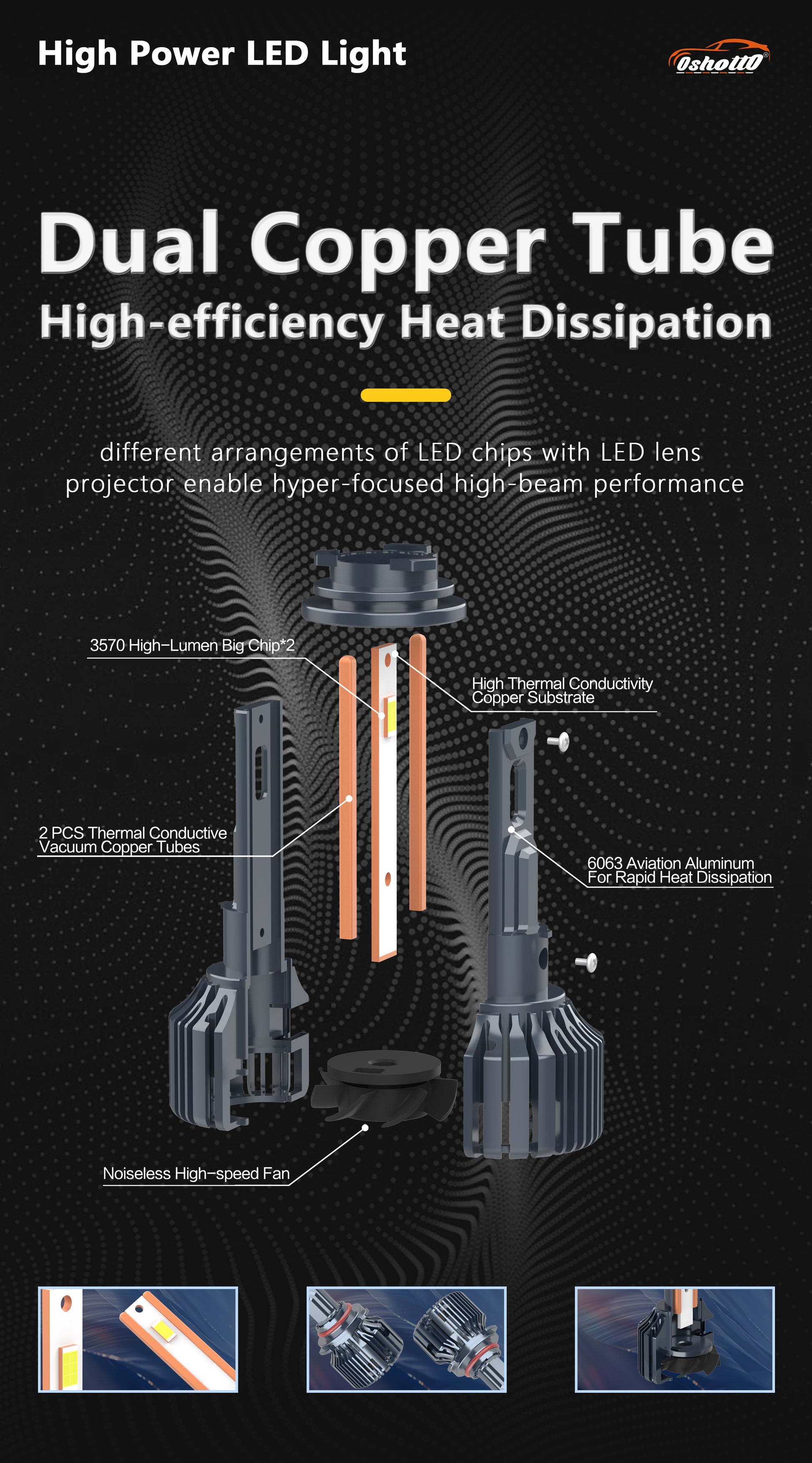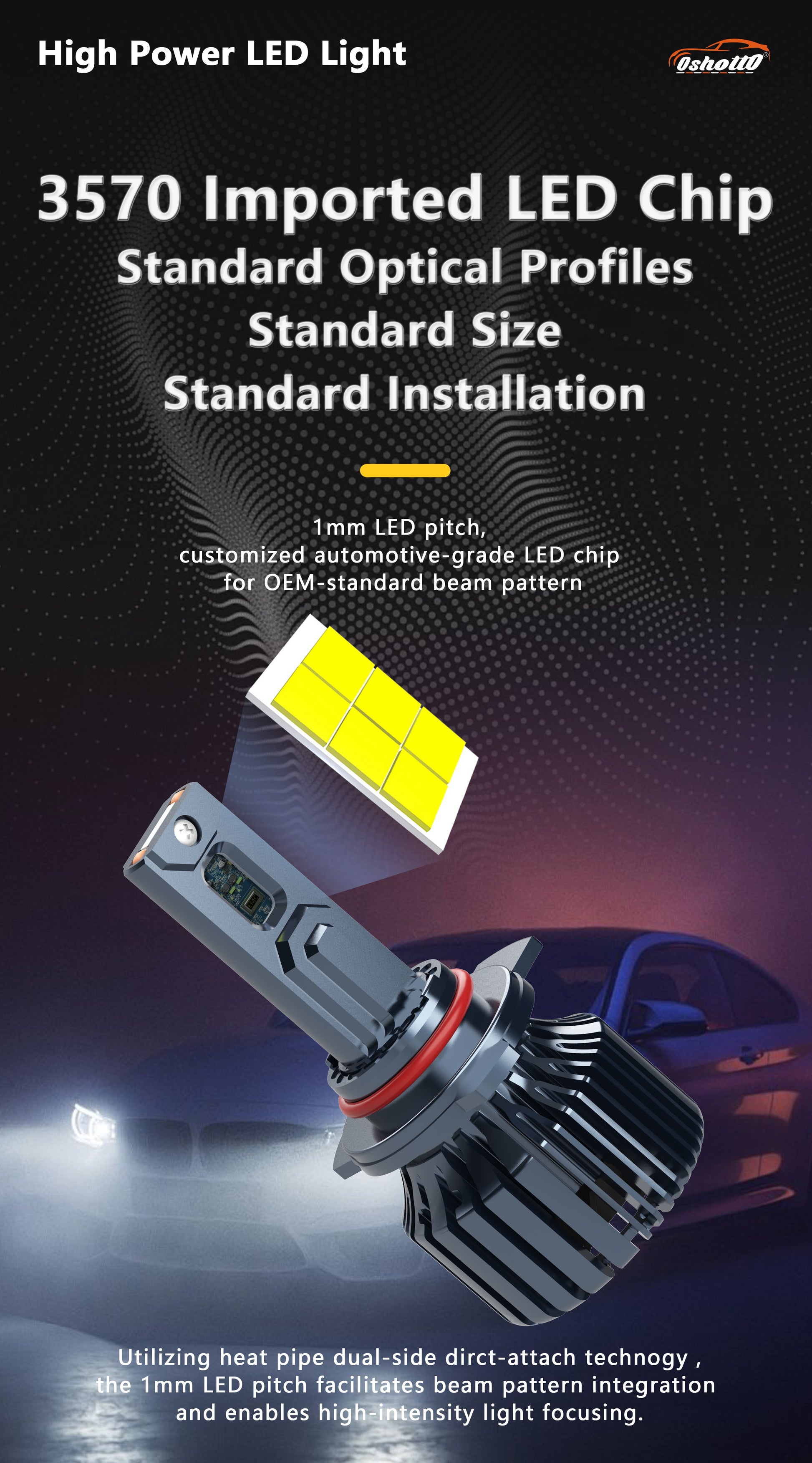 Oshotto H8/H9/H11 150W High Power Car LED Bulbs 7500Lm 6500K Car Headlight Bulb Halogen Replacement - Superior Brightness, Cool White Light