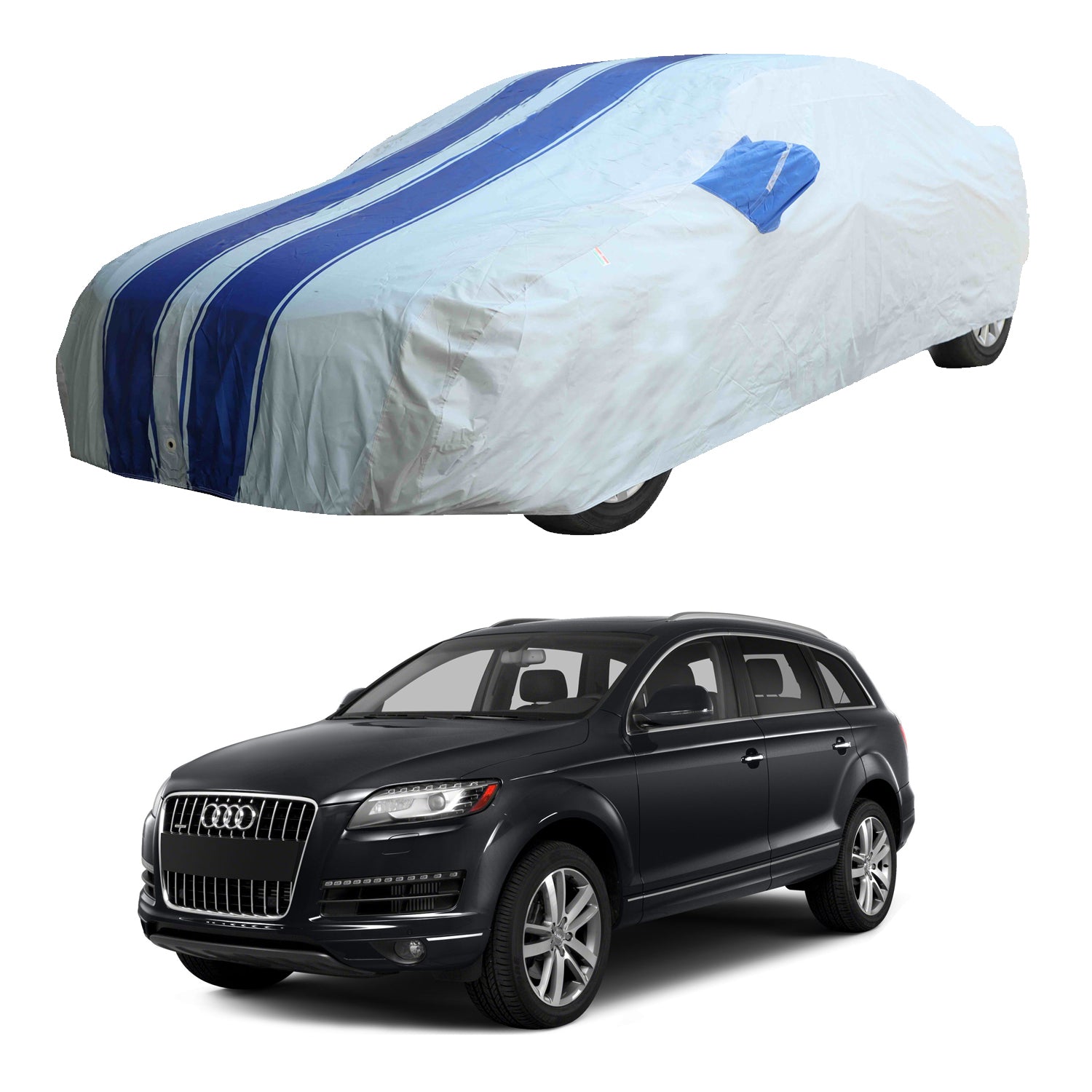 Oshotto 100% Blue dustproof and Water Resistant Car Body Cover with Mirror Pockets For Audi Q7 (2008-2017)