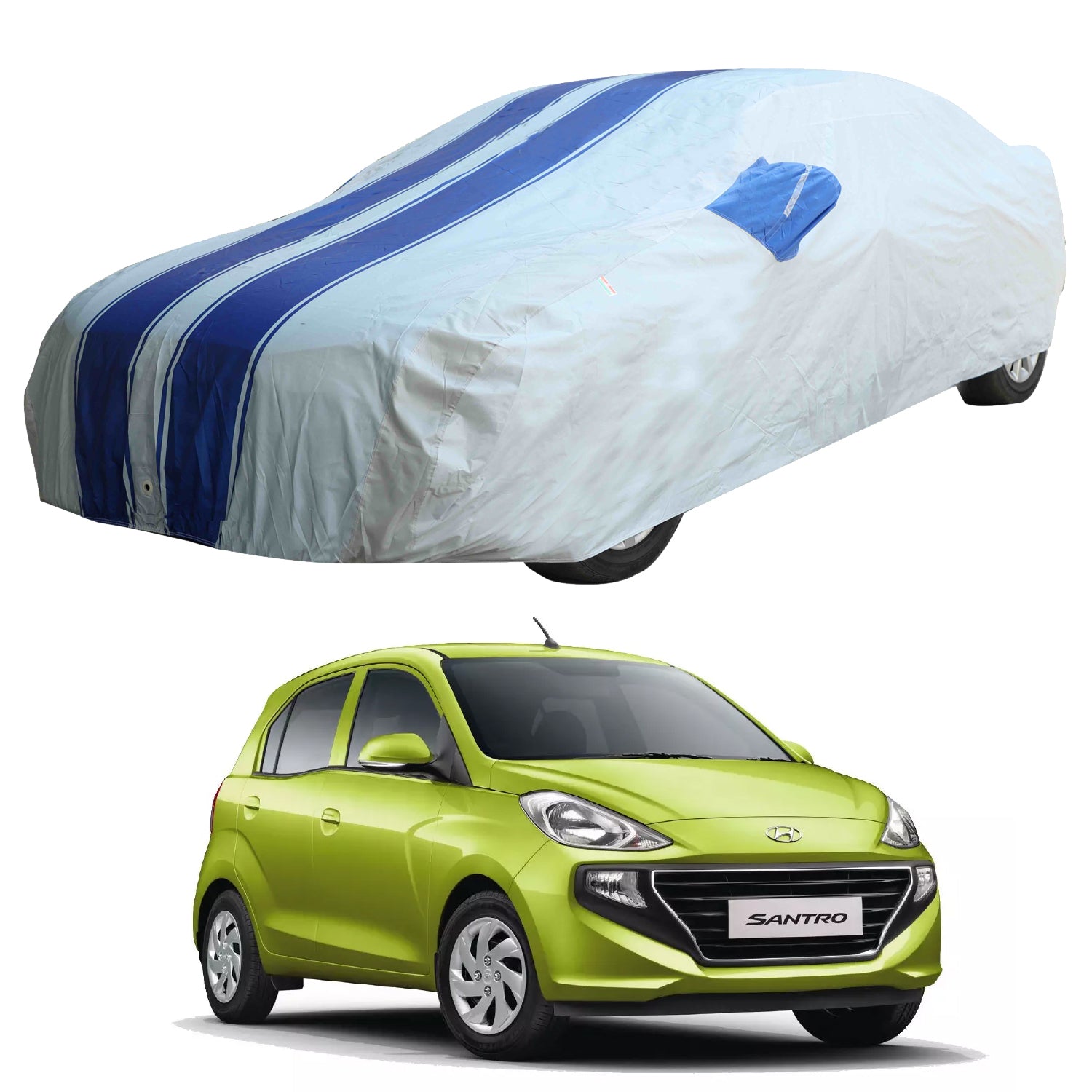 Oshotto 100% Blue dustproof and Water Resistant Car Body Cover with Mirror Pockets For Hyundai Santro 2018-2023