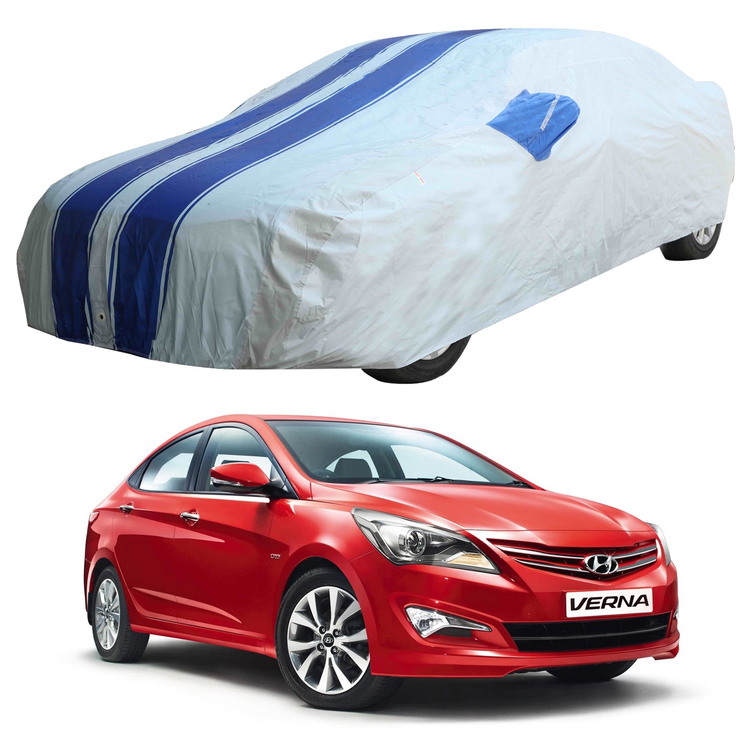 Oshotto 100% Blue dustproof and Water Resistant Car Body Cover with Mirror Pockets For Hyundai Verna Fluidic