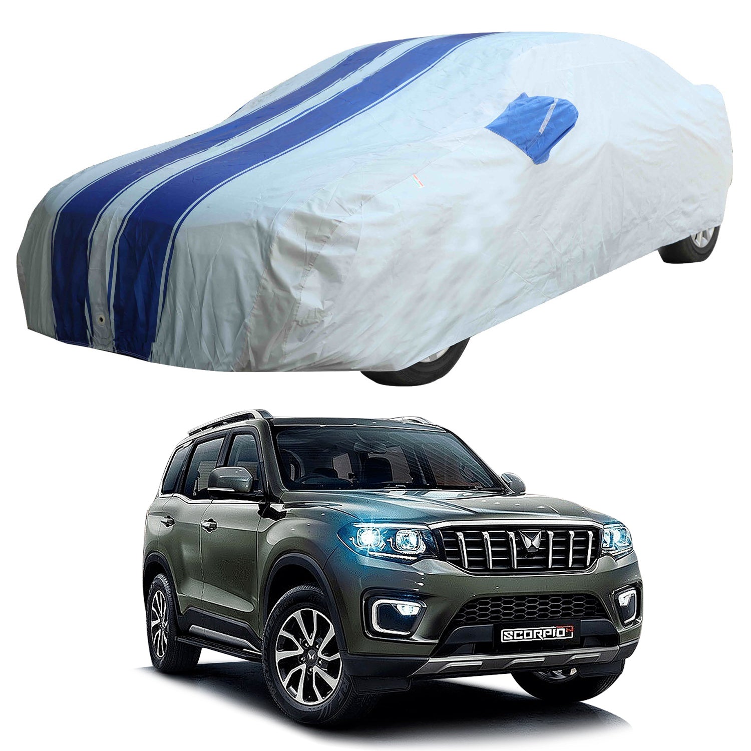 Oshotto 100% Blue dustproof and Water Resistant Car Body Cover with Mirror Pockets For Mahindra Scorpio N 2022 Onwards