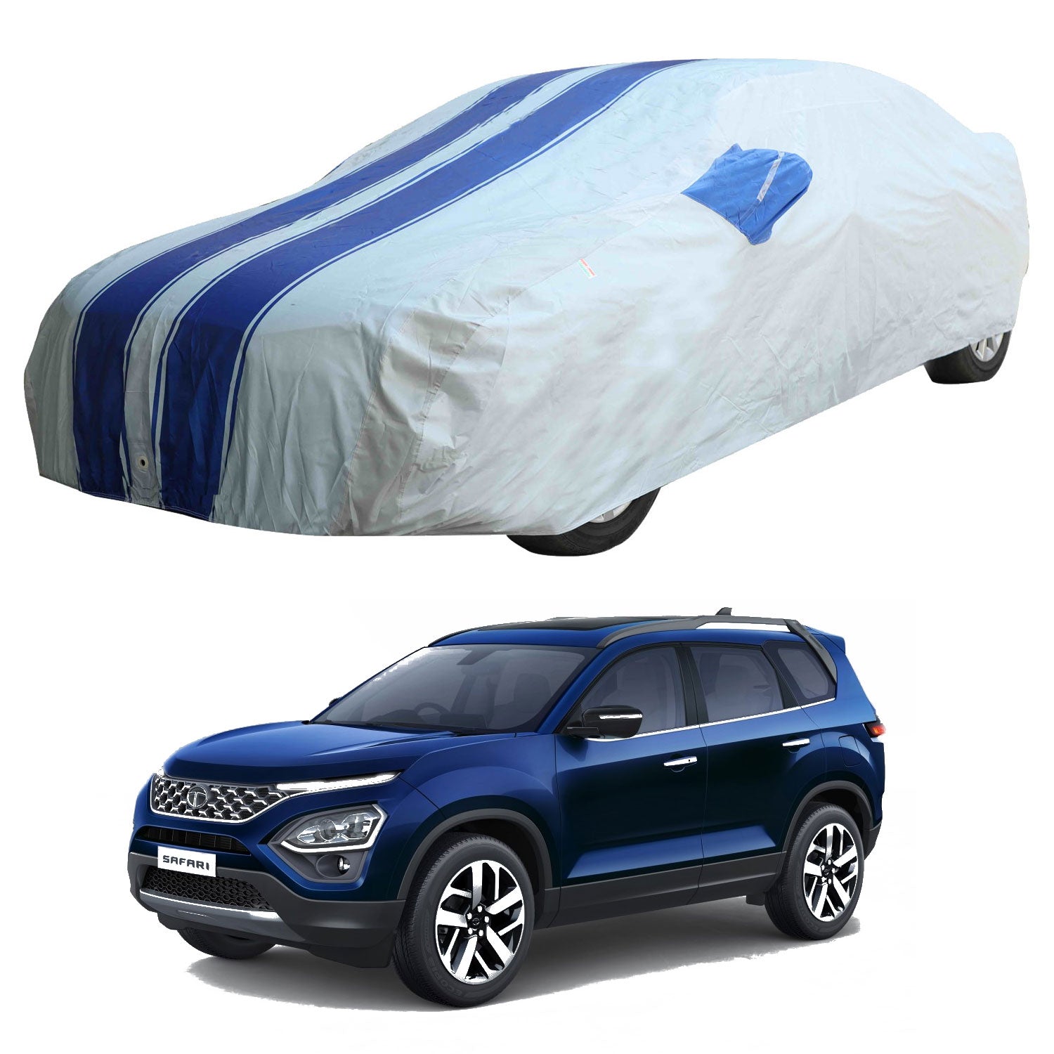 Oshotto 100% Blue dustproof and Water Resistant Car Body Cover with Mirror Pockets For Tata Safari 2021-2023