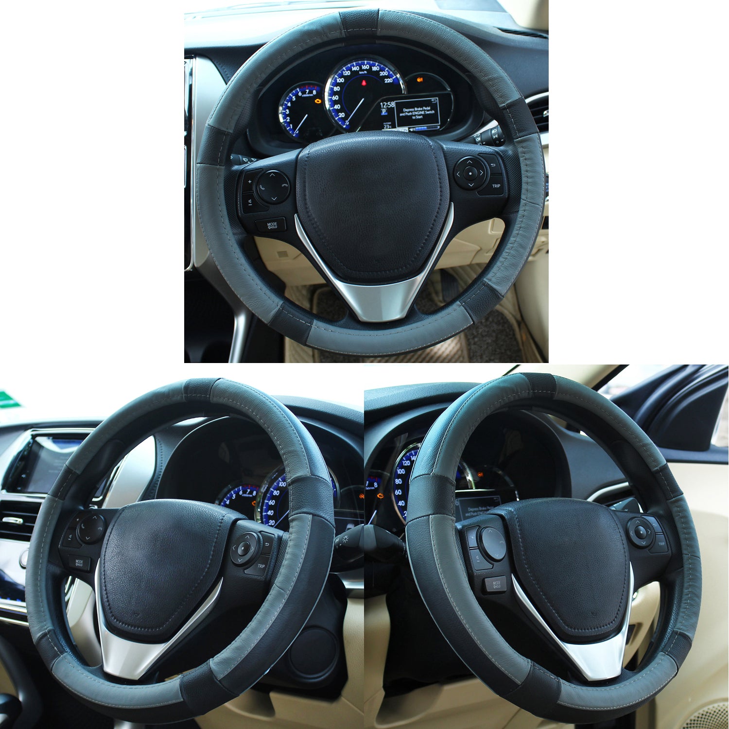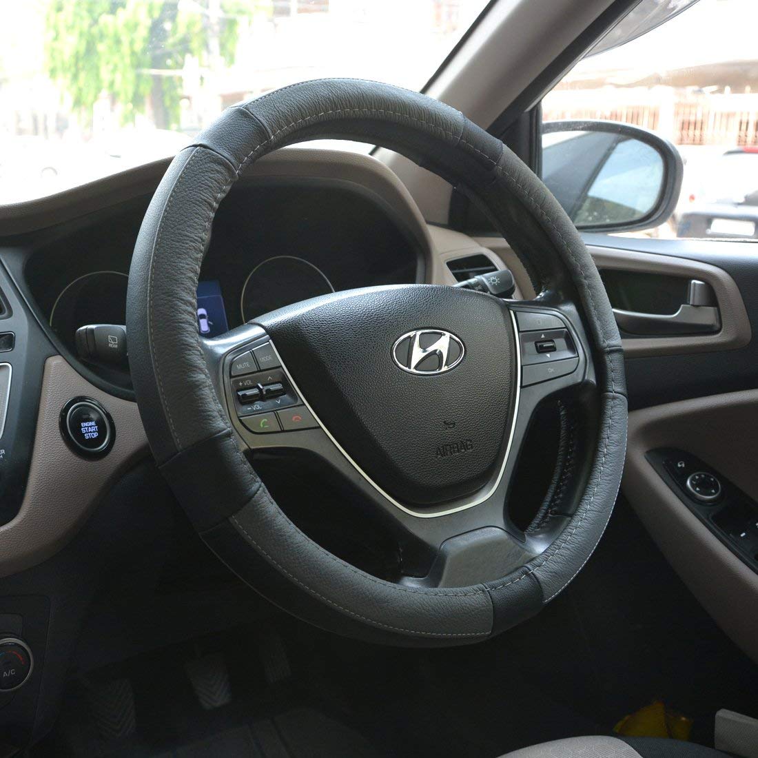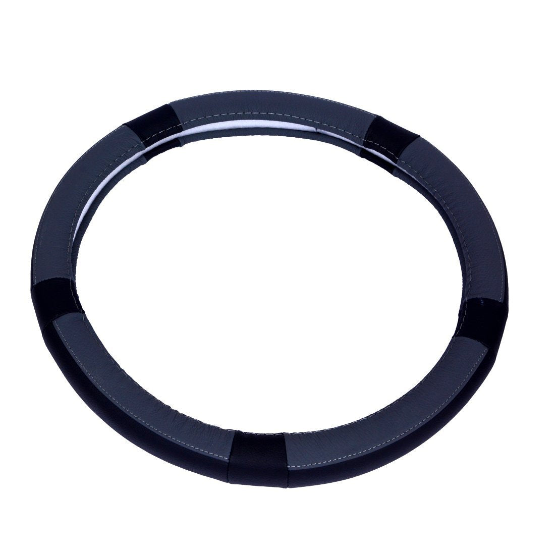 Oshotto SC-001 Leather Car Steering Cover (Black and Grey,Medium)