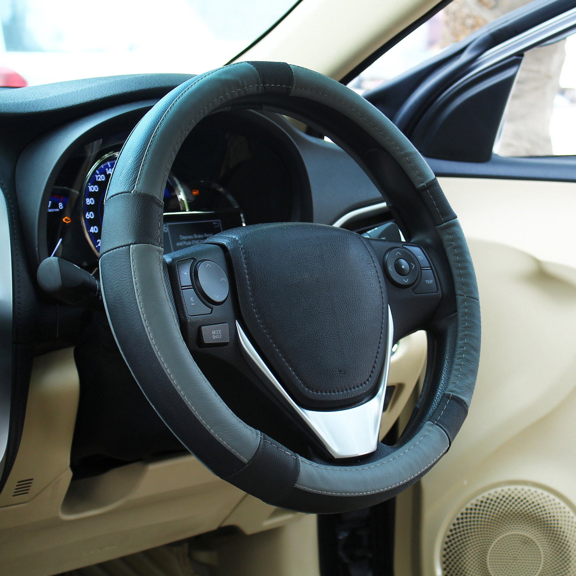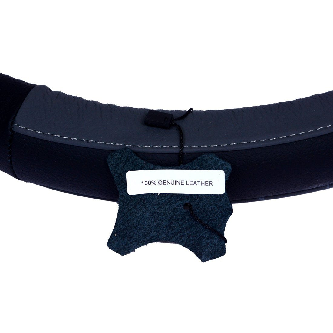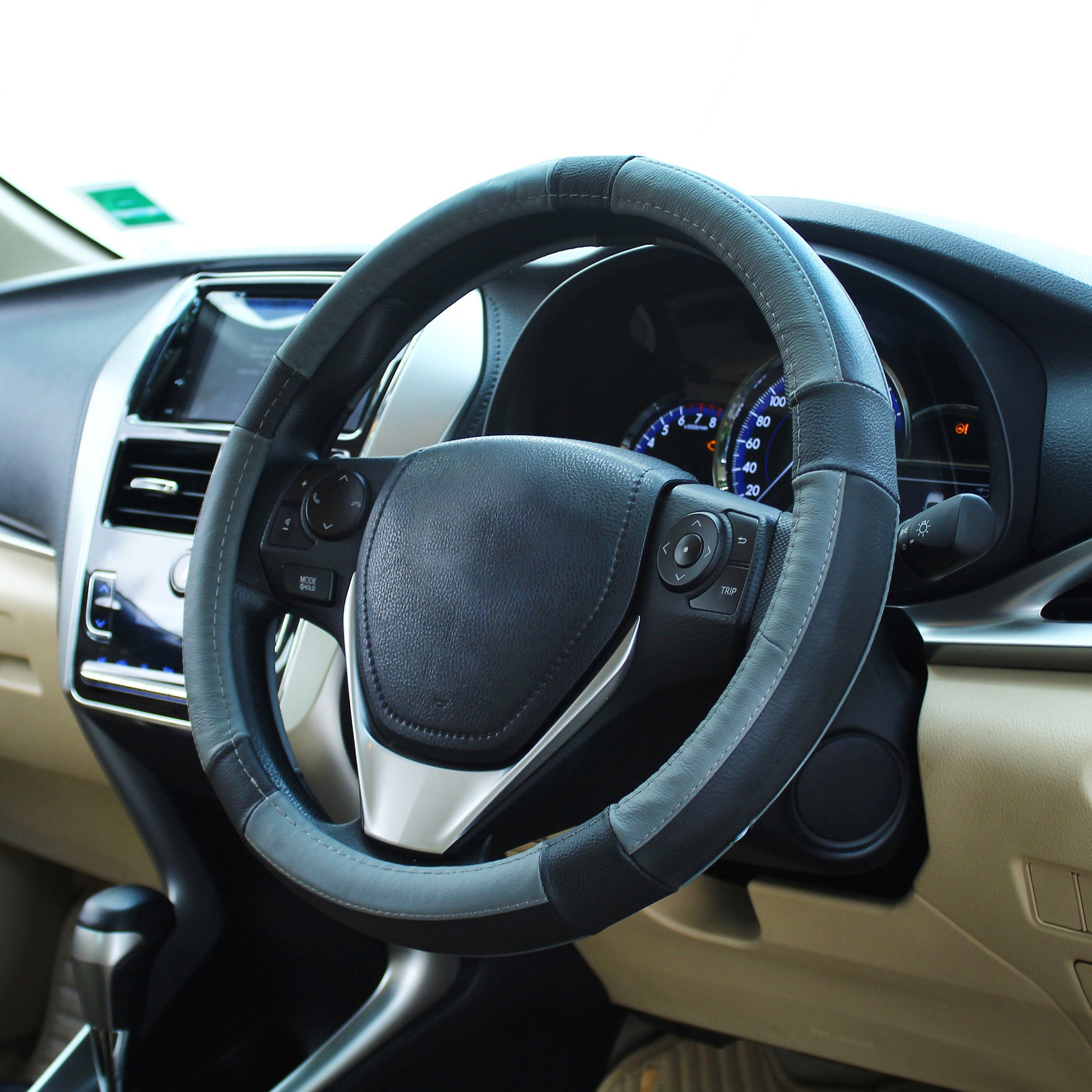 Oshotto SC-001 Leather Car Steering Cover (Black and Grey,Medium)