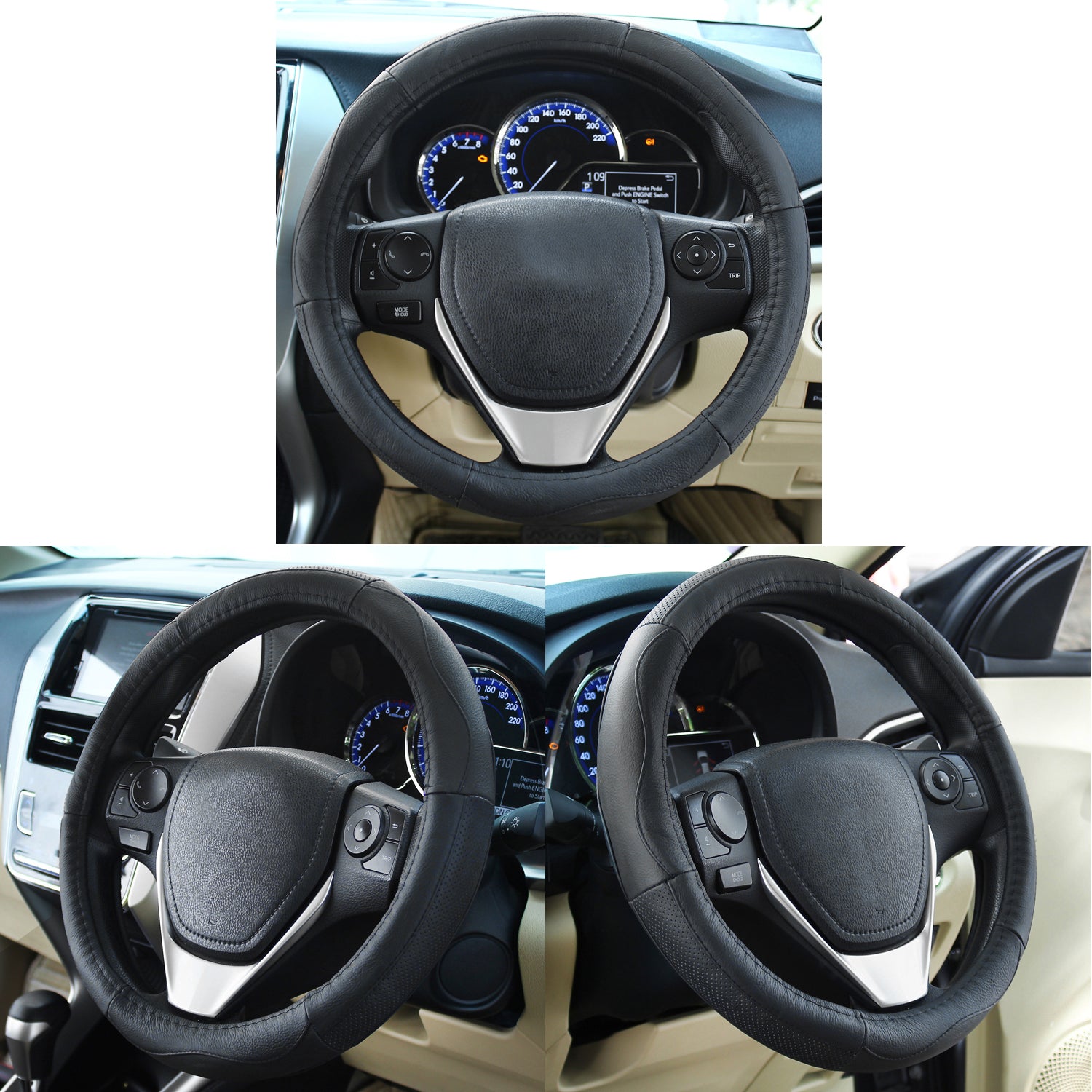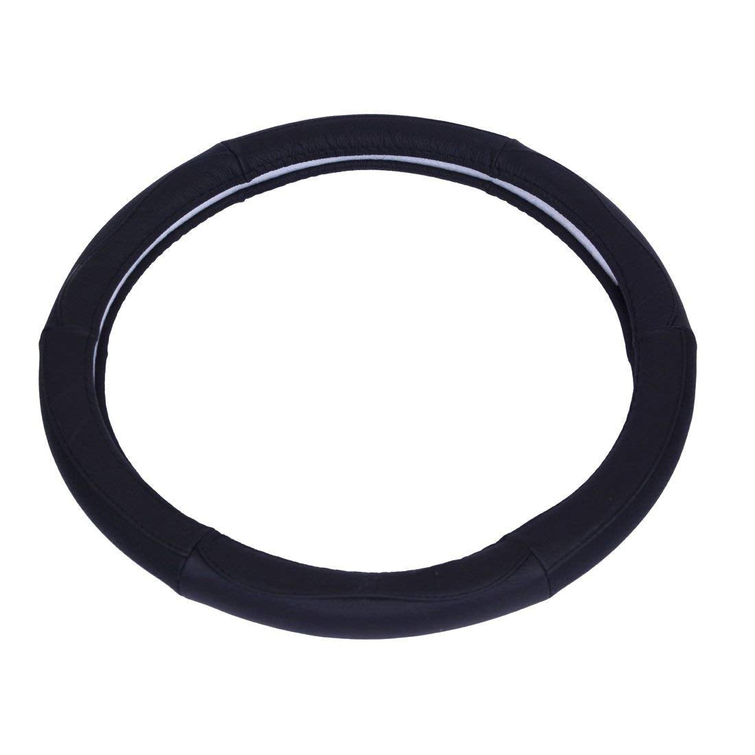 Oshotto SC-005 Leather Car Steering Cover (Black,Medium)