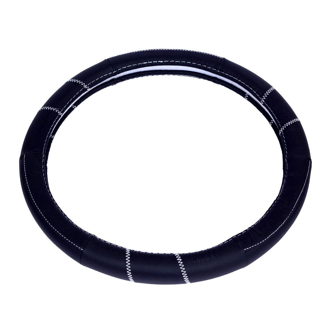 Oshotto SC-006 Leather Car Steering Cover (Black,Medium)