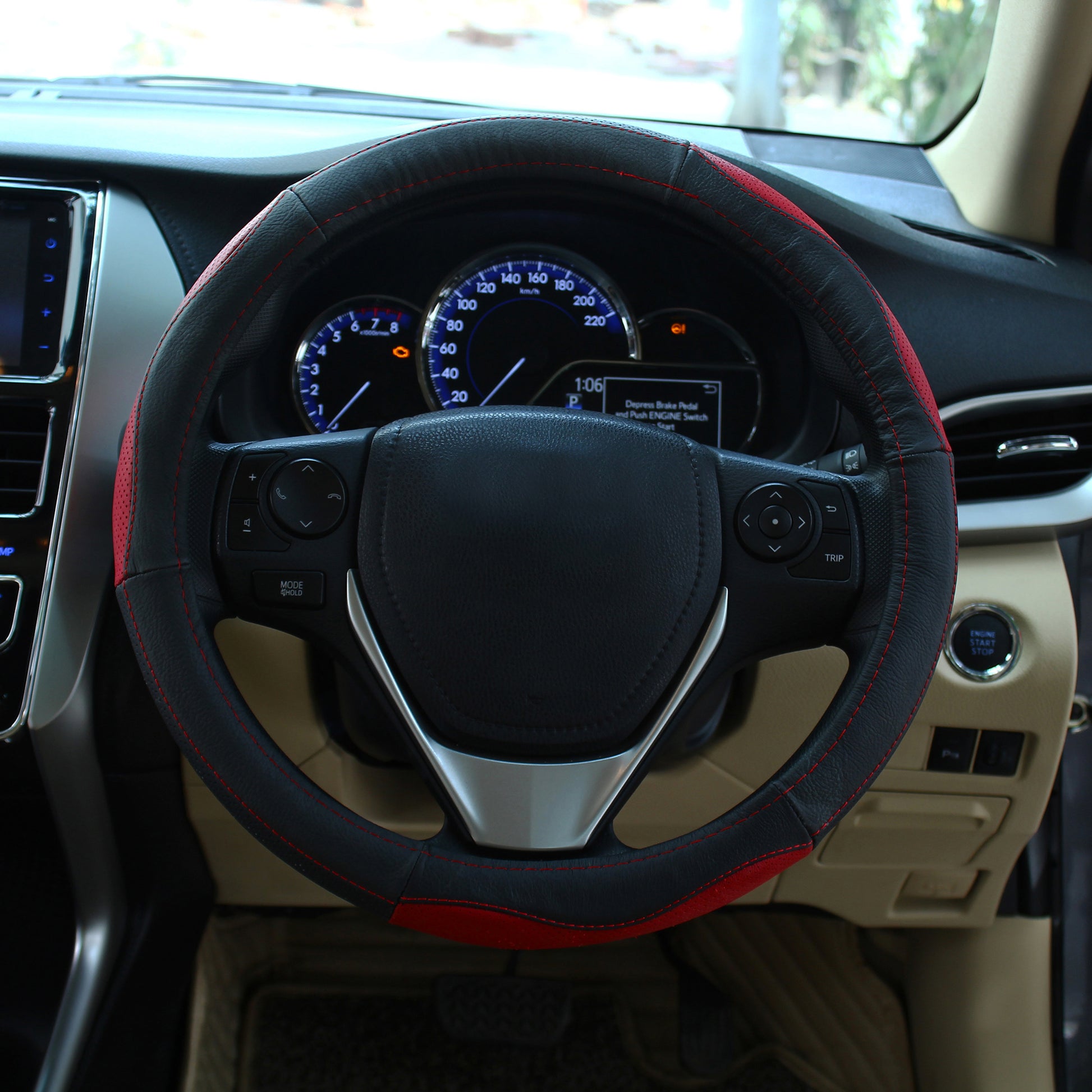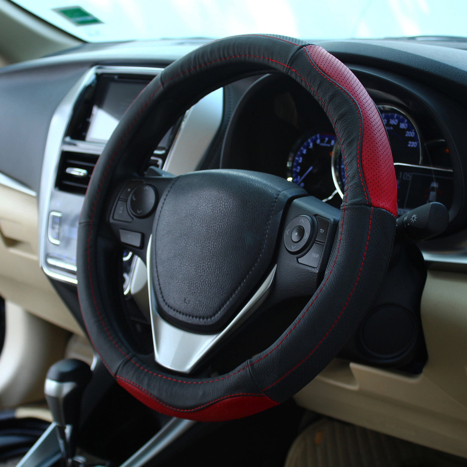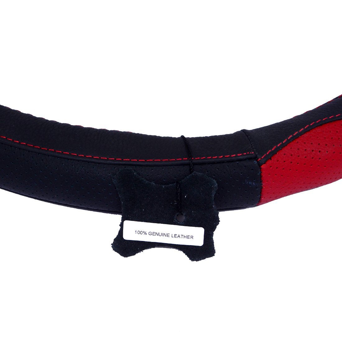 Oshotto SC-007 Leather Car Steering Cover (Black and Red,Medium)