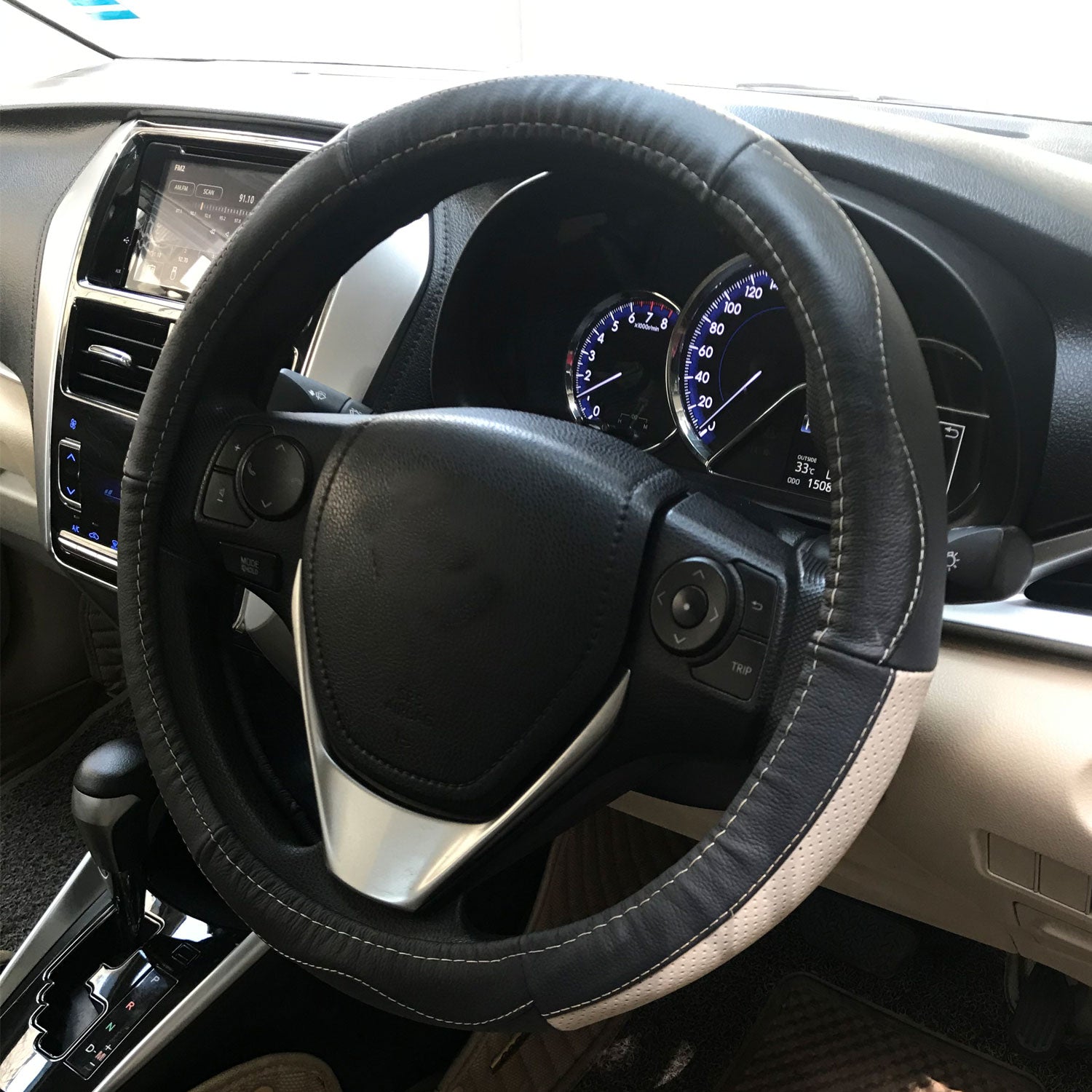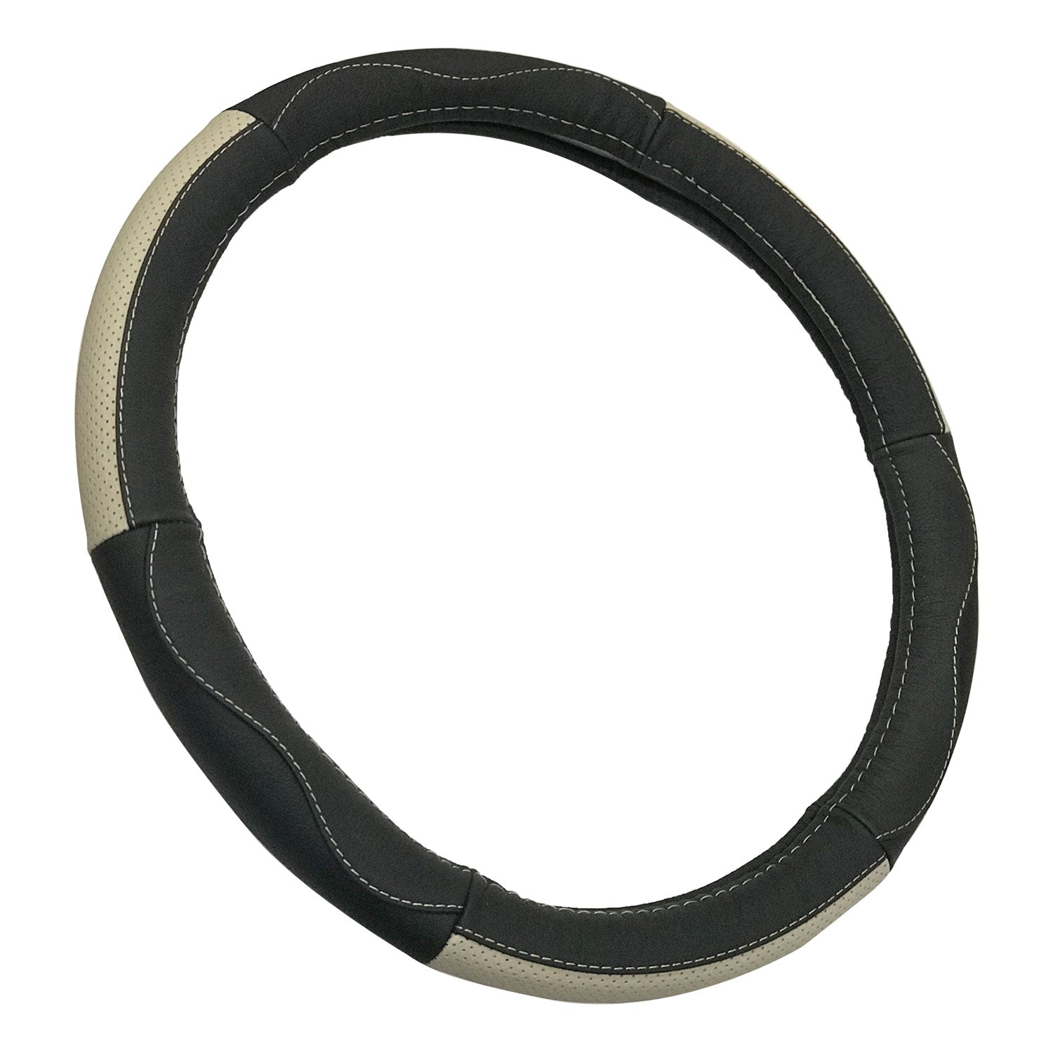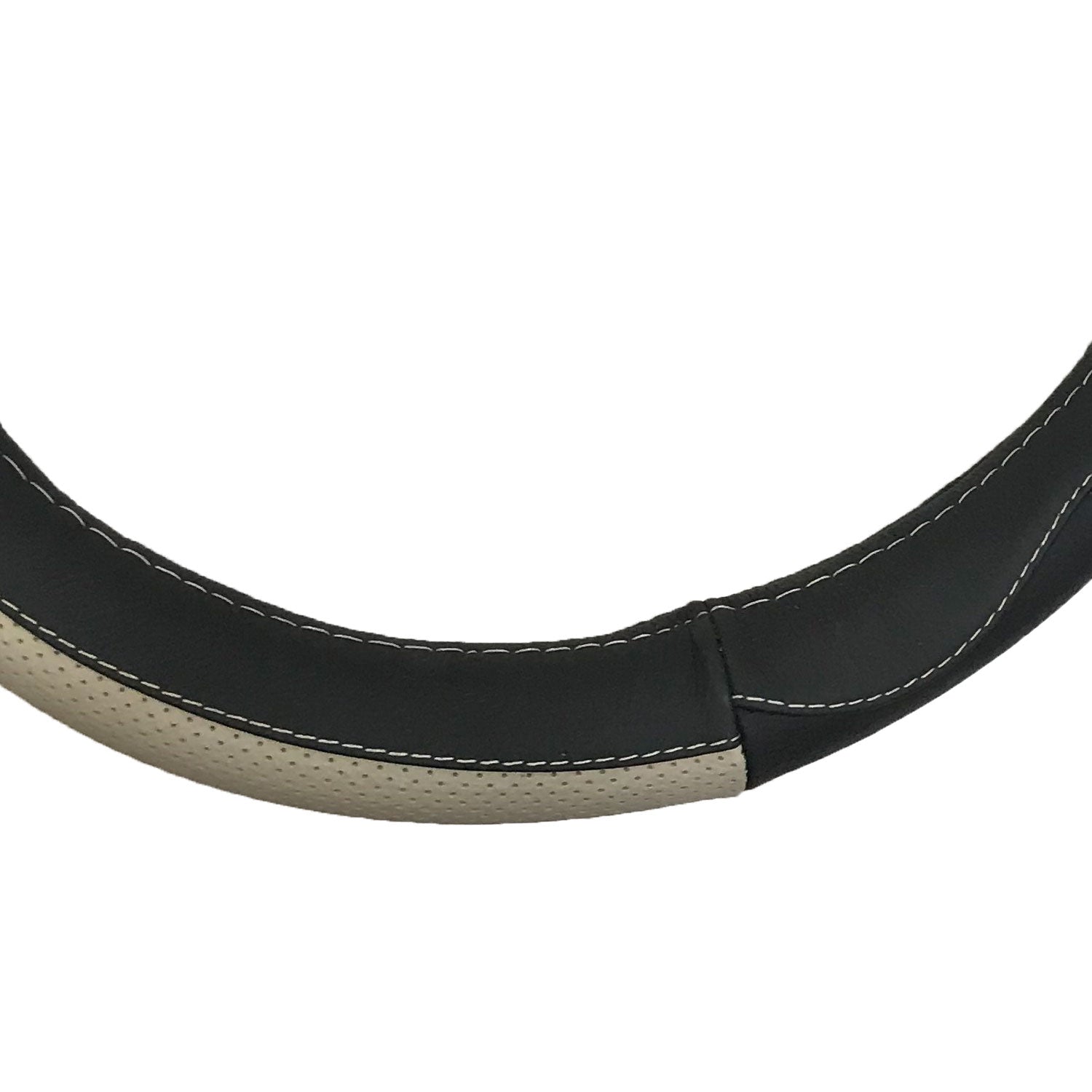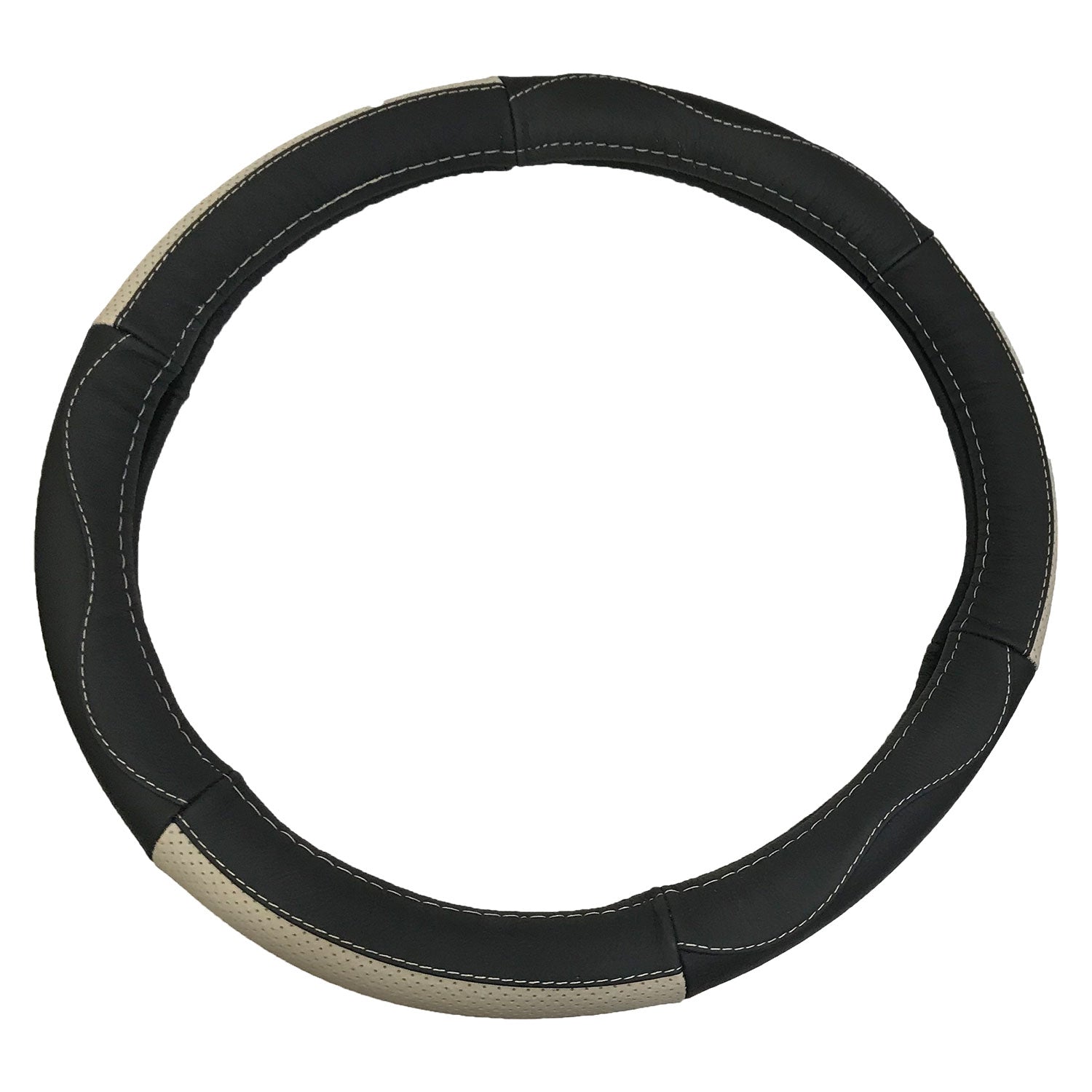 Oshotto SC-009-A Fiber Leather Universal Car Steering Cover -Medium (Black Tan)