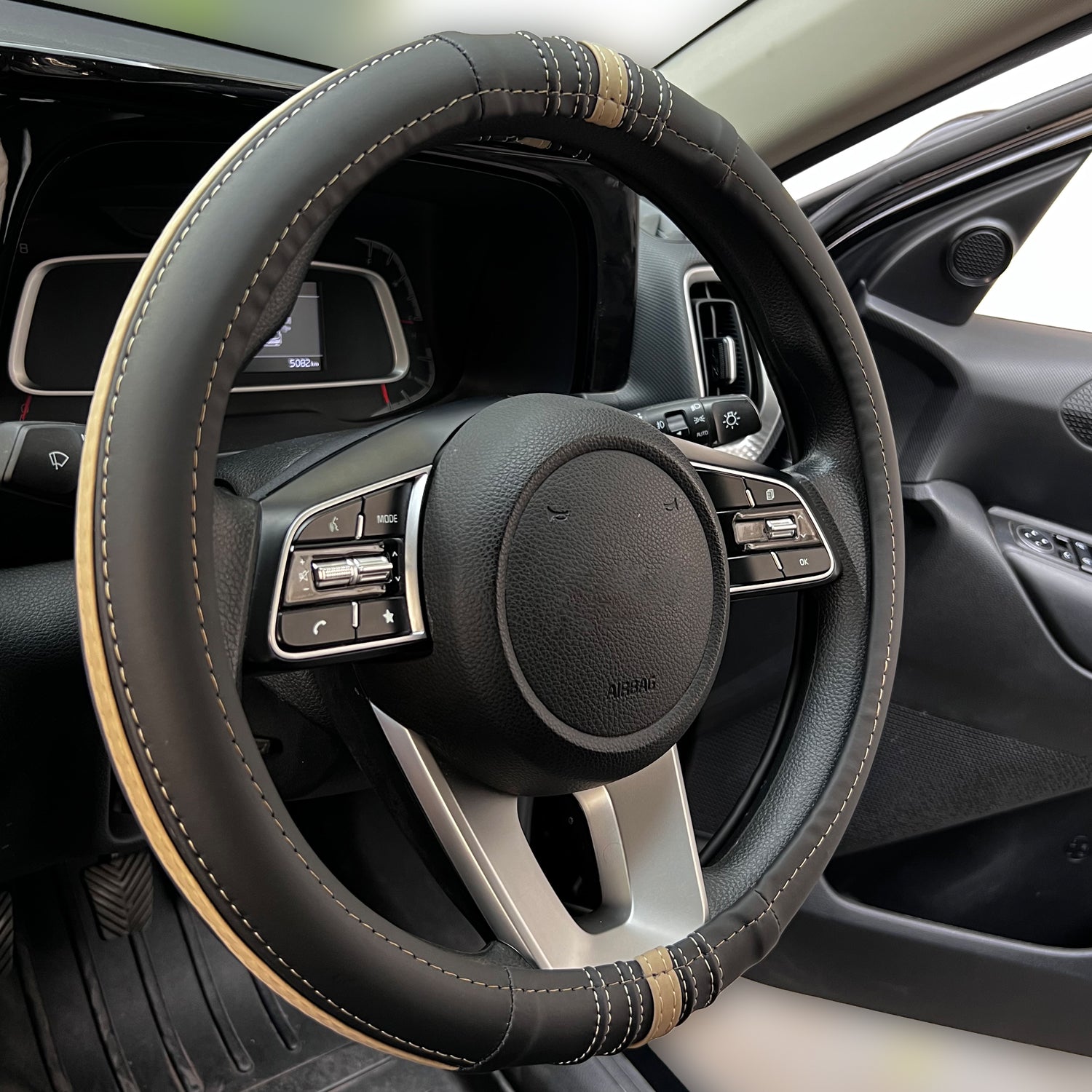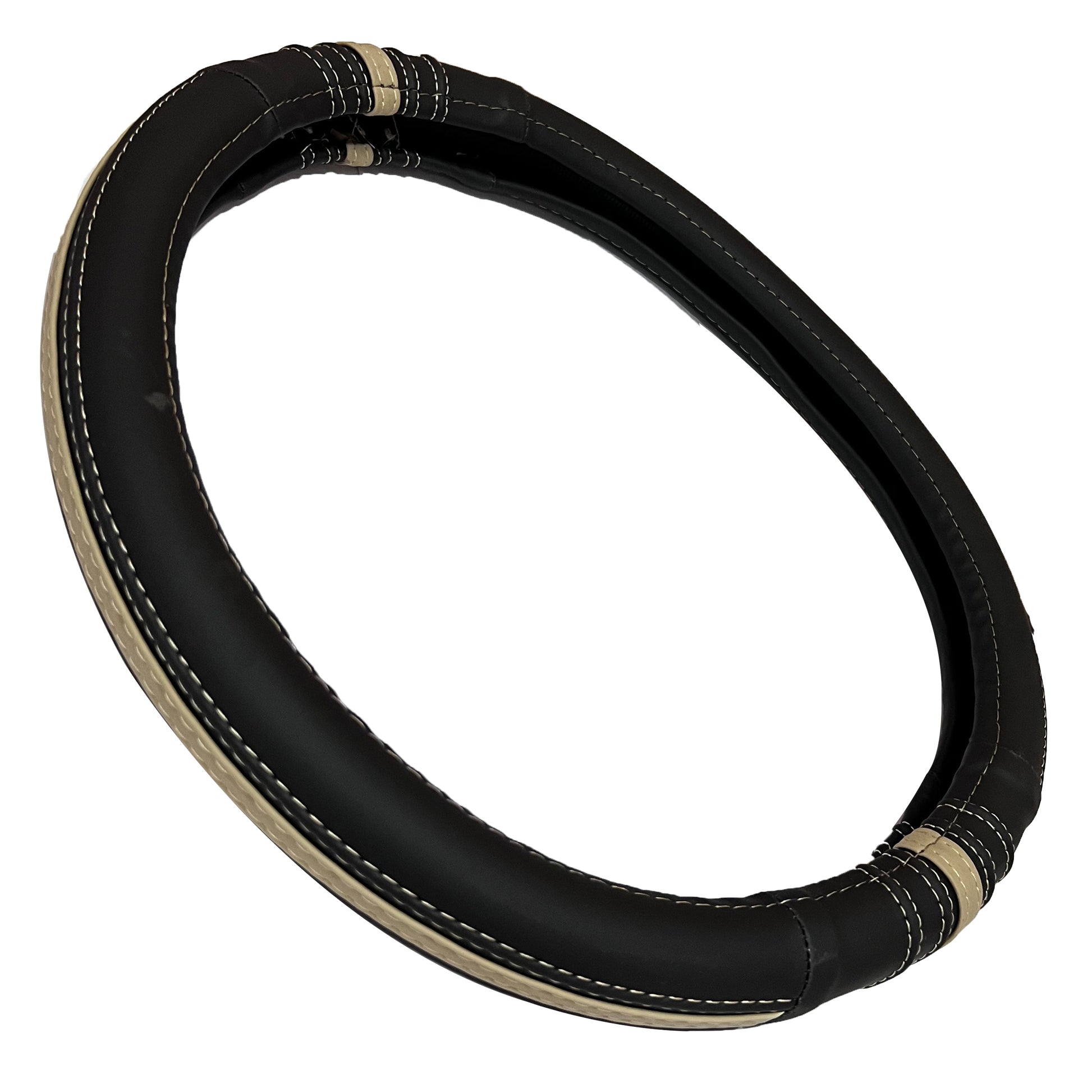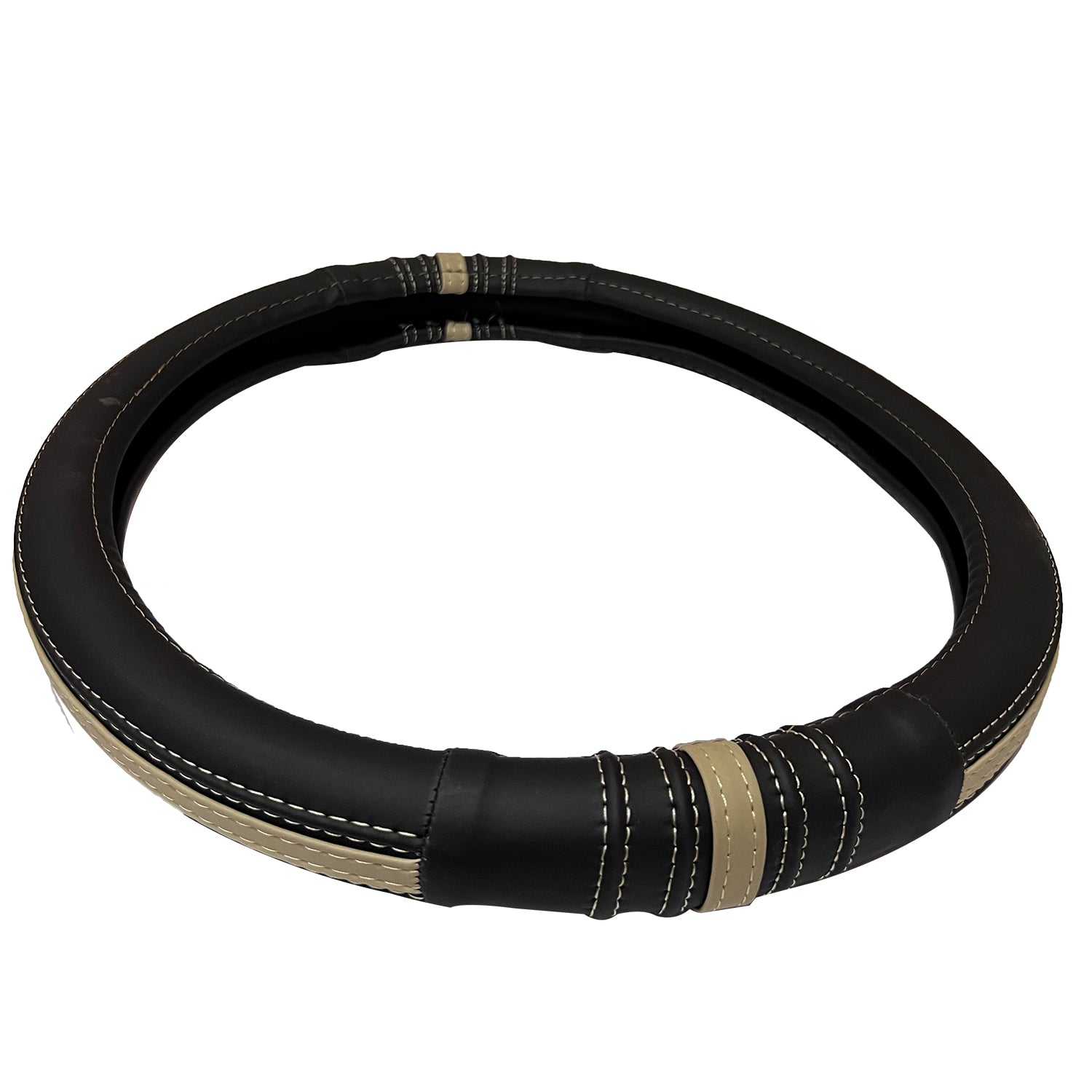 Oshotto SC-19 Fiber Leather Car Steering Cover For All Cars (Black, Beige)
