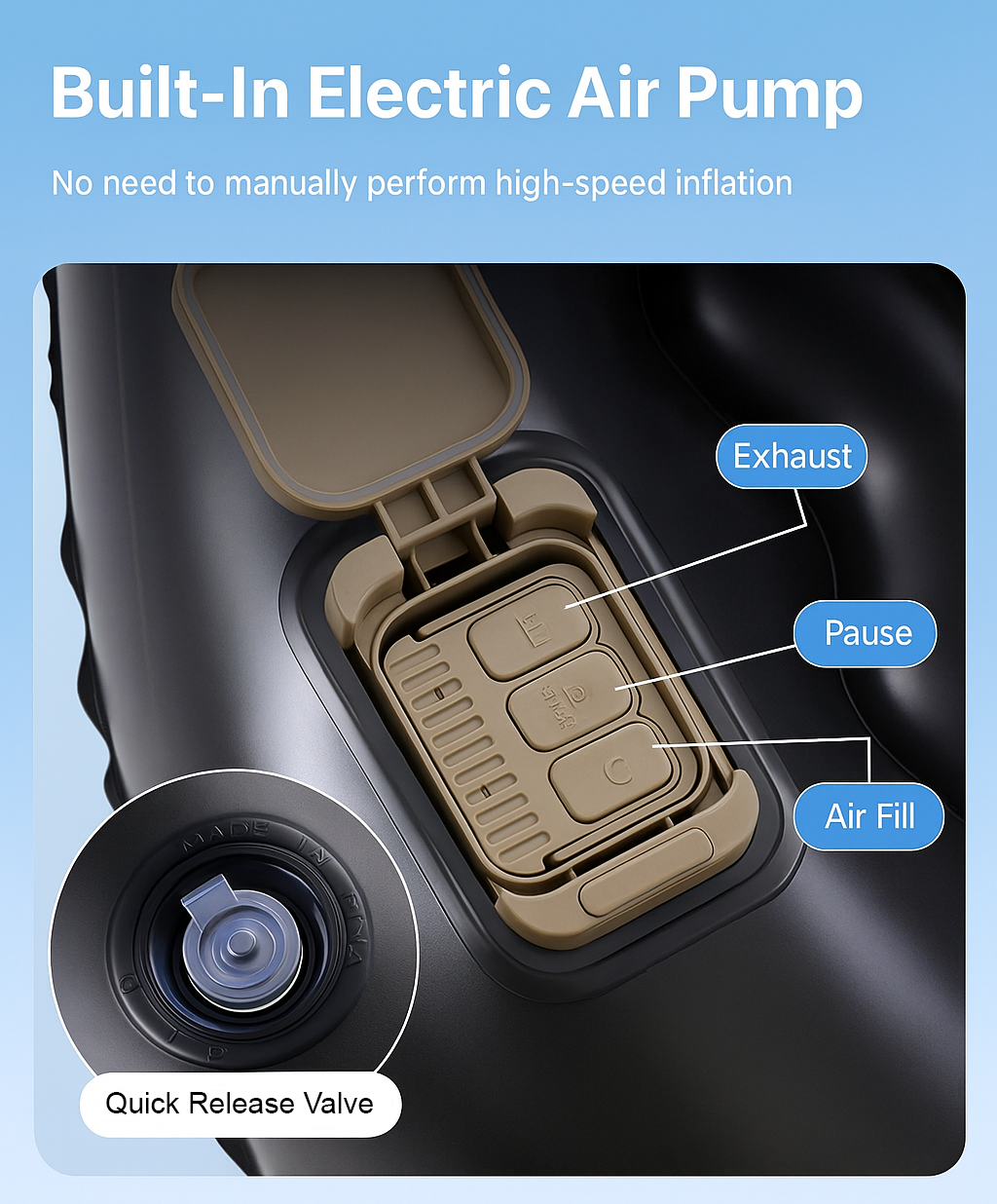 - EFFORTLESS ONE-TOUCH INFLATION: No more manual pumping or lost attachments! Our powerful, integrated 12V electric pump connects directly to your car's cigarette lighter. Go from a flat mattress to a firm, comfortable bed in under 3 minutes with the simple flick of a switch.