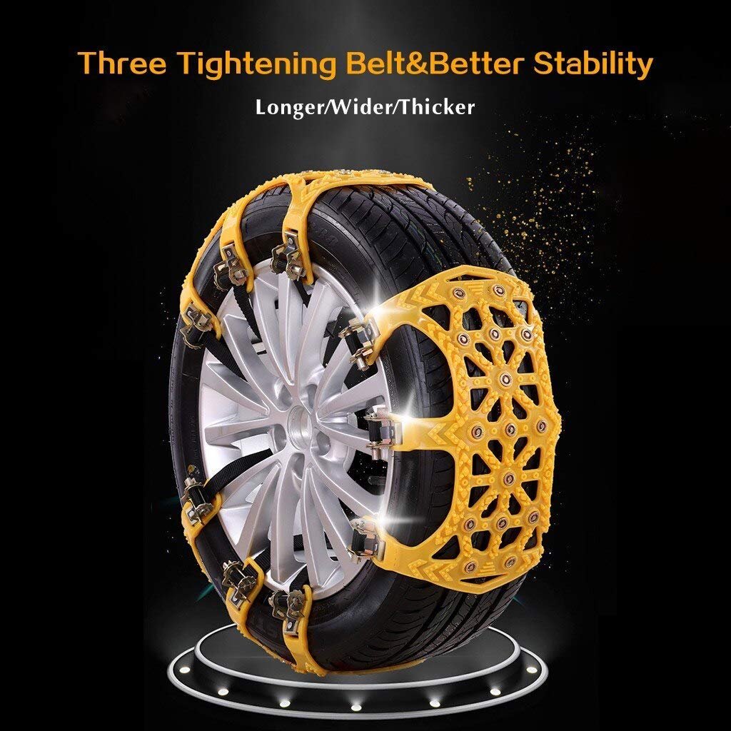 - [Applicable Opportunity]: These anti-jump snow chains for cars work well and have high efficiency, whether you're stuck in sand, mud, snow, ice, climbing or other emergent situations, to protect the tires to prevent the tire slip, guarantee the normal operation of the vehicle