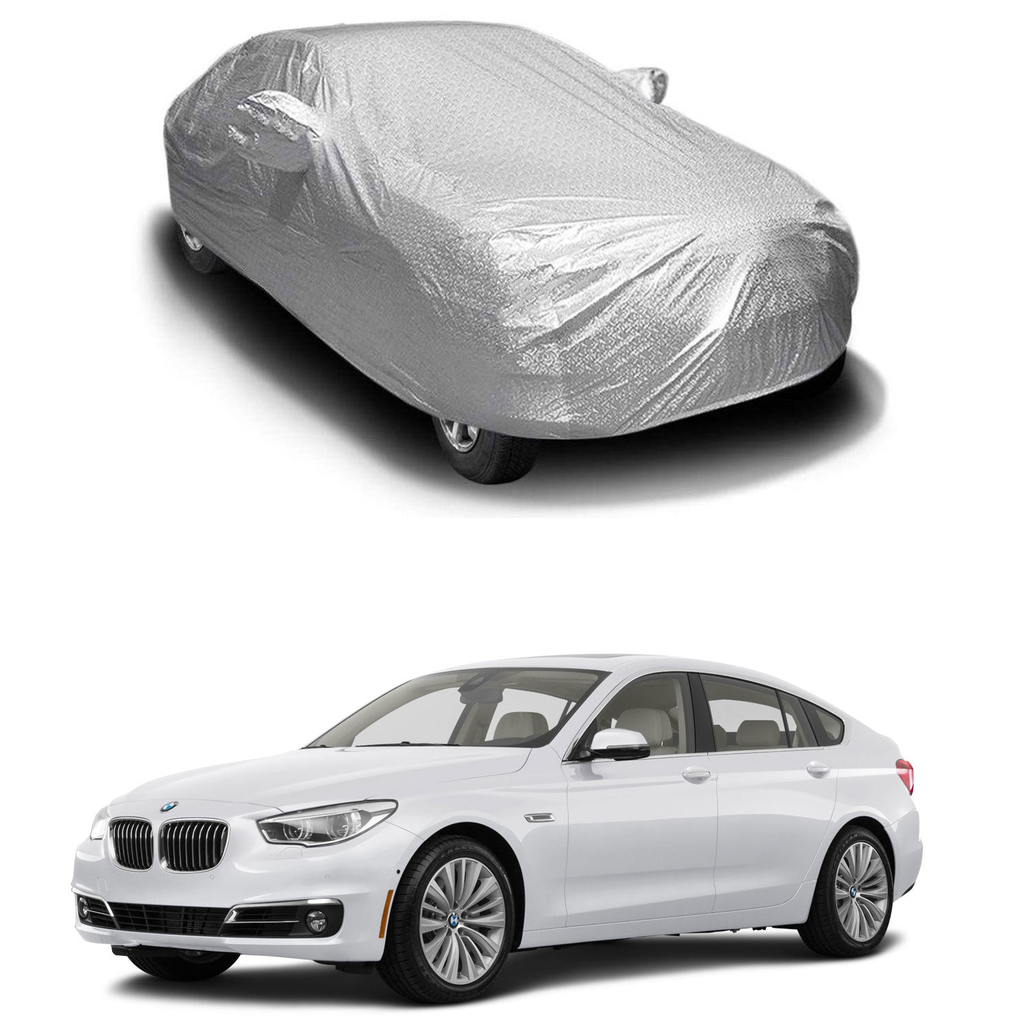 Oshotto Spyro Silver Anti Reflective, dustProof Silver and Water Proof Silver Car Body Cover with Mirror Pockets For BMW 5GT